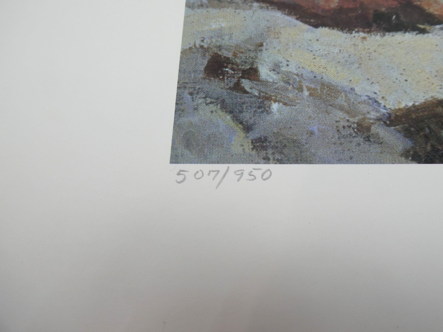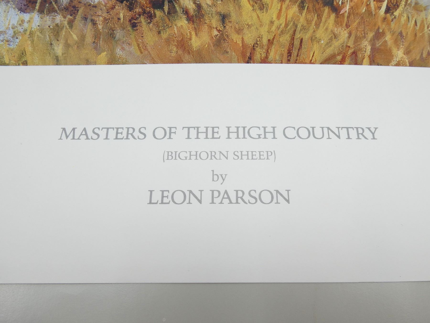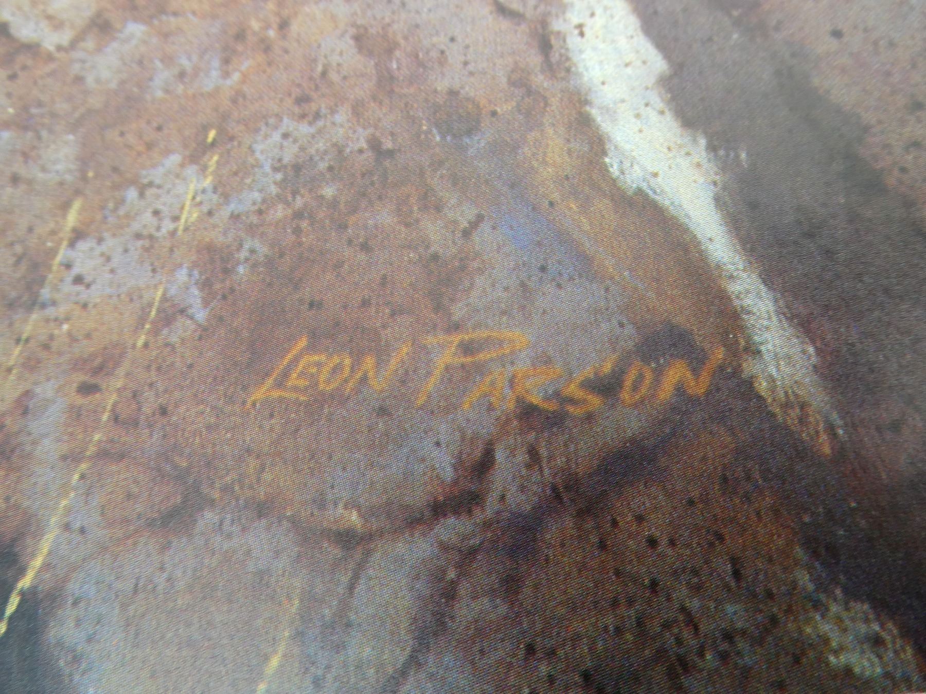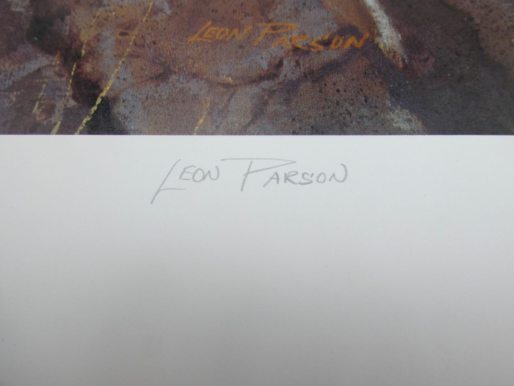 (1) BY LEON PARSON, PRINT NO. 507 / 950, SIGNED BY ARTIST, PUBLISHED BY PETERSON PRINTS, COPYRIGHT 1985, SHOWS SOME WEAR & TEAR, APPROX. 40.5" X 26". SEE PHOTOS.