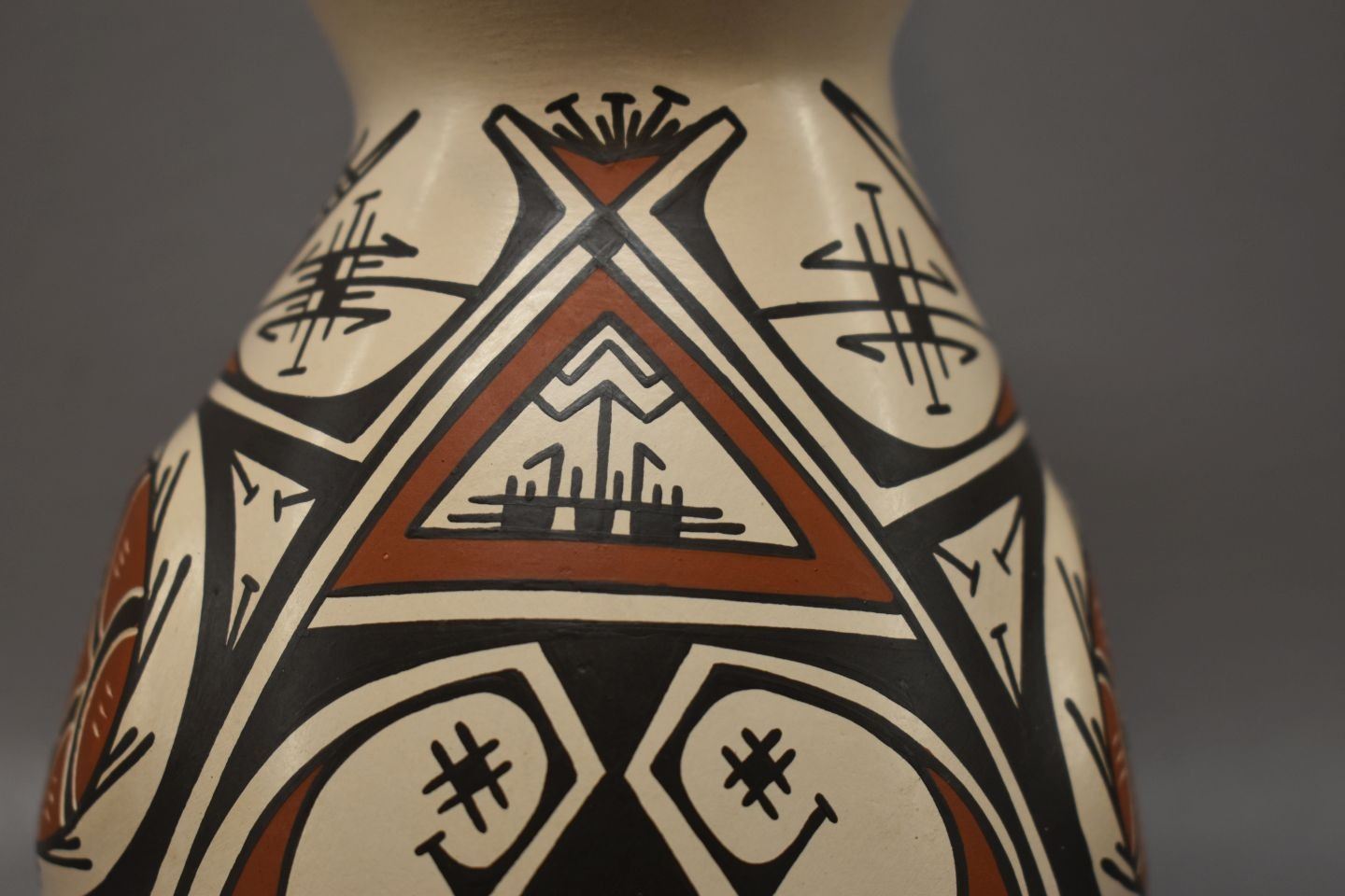 1980-90's Mata Ortiz hand coiled and polychrome painted design signed Jorge Corona Guillen 4.5" x 7.5" x 5.5"