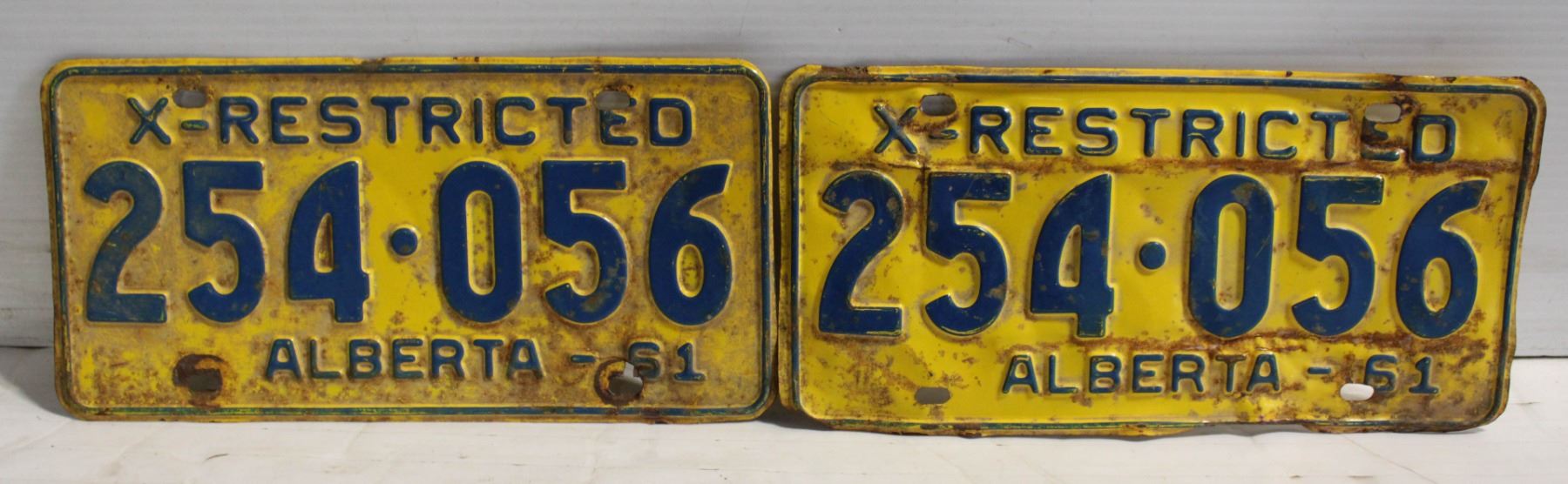 MATCHING 1961 X-RESTRICTED ALBERTA PLATES 254-056