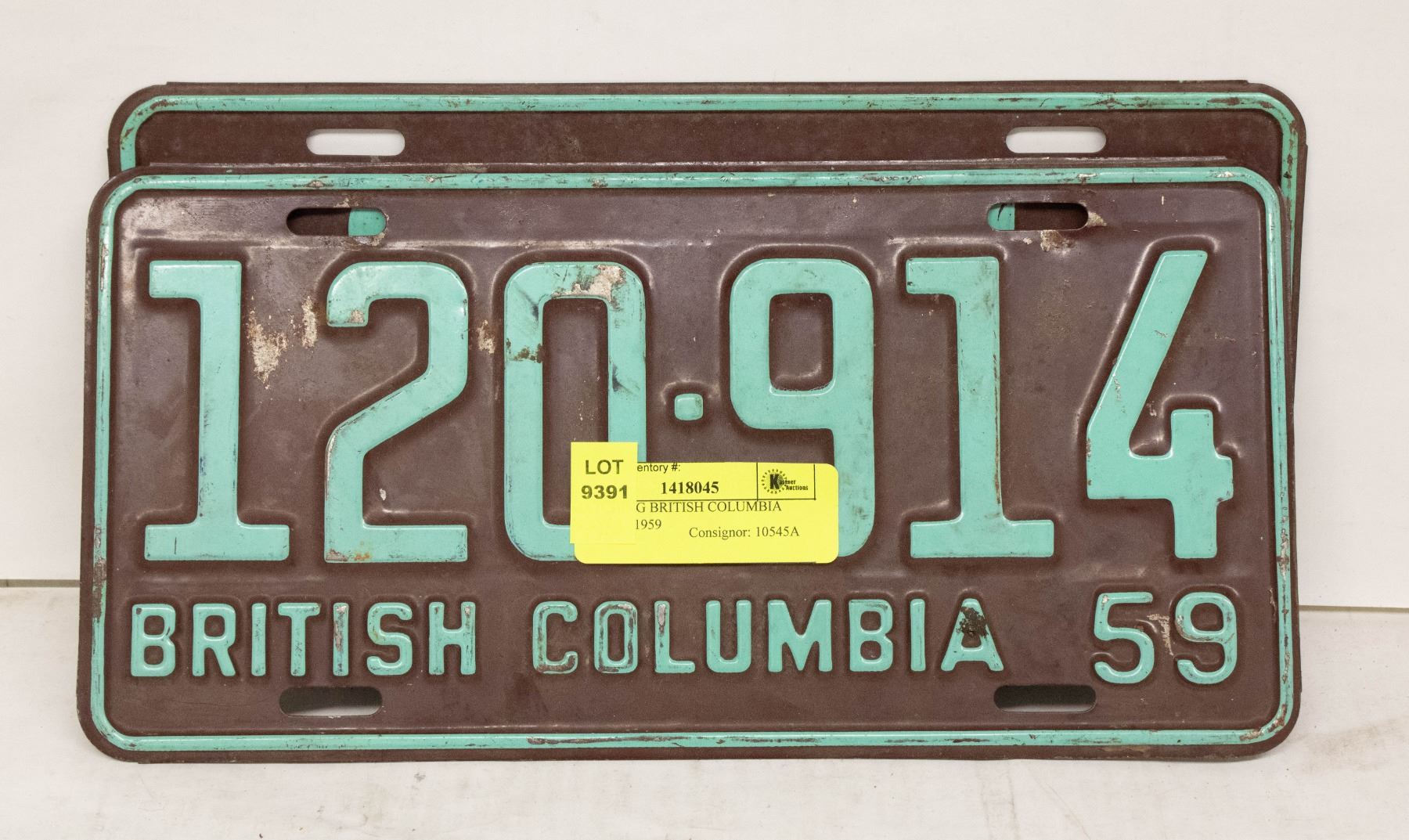 MATCHING BRITISH COLUMBIA PLATES - 1959