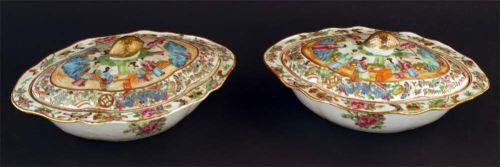 "MATCHING PAIR OF ROSE MEDALLION VEGITABLE DISHES with covers, circa 1830 11"" long, excellent packing and shipping (excluding insurance) $50"
