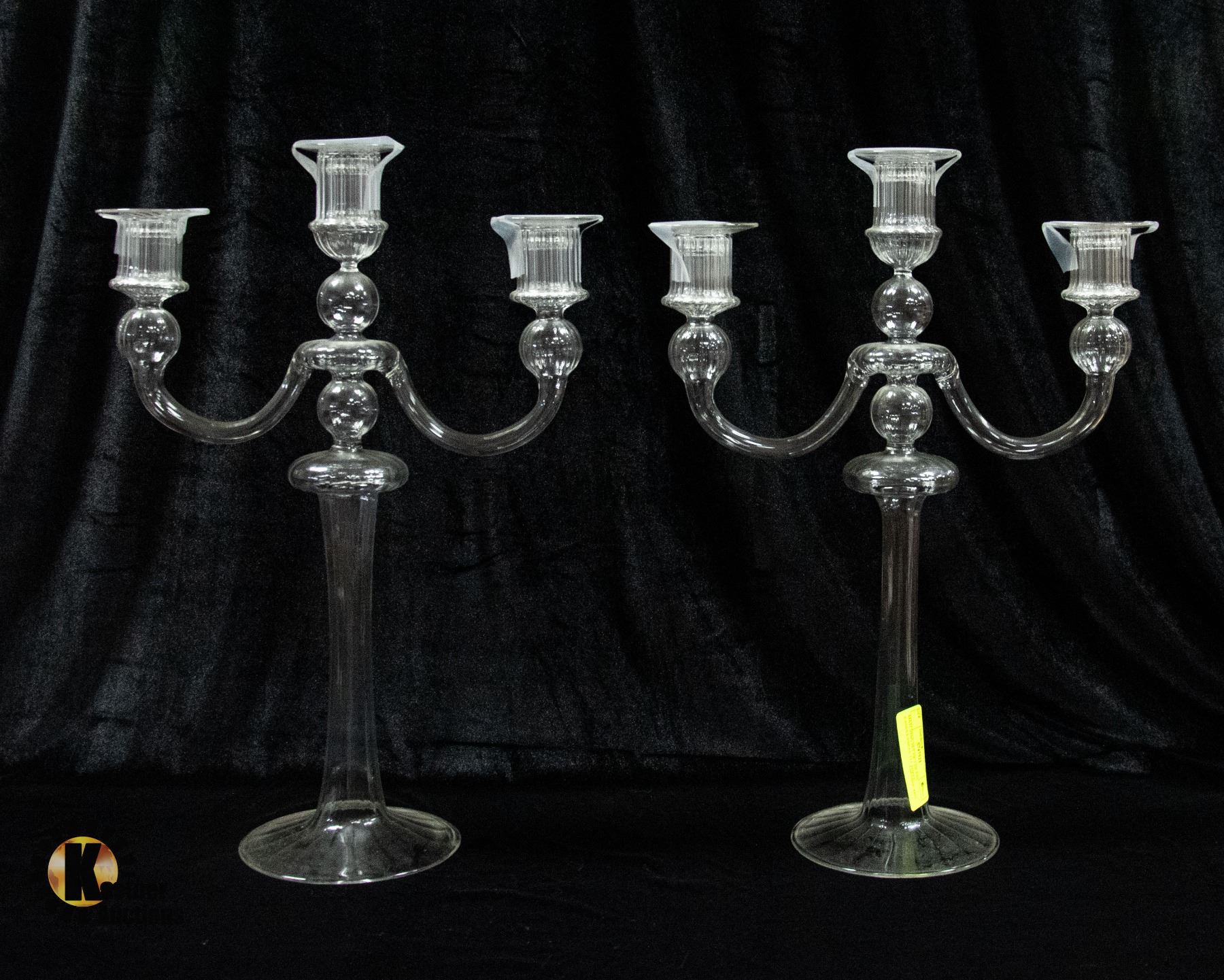 MATCHING SET OF 2 GLASS CANDLEABRAS, FITS 3 EACH