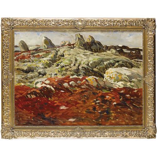 <B>MATHURIN MEHEUT</B></I> (French 1882-1958)<BR><I>Untitled,</B></I> circa 1929<BR>Oil on canvas<BR>29 x 39 inches (73.7 x 99.1 cm)<BR>Unsigned<BR><BR>Provenance:<BR>Jeffrey Basinger, family descent, grandson of Mr. and Mrs. Minton;<BR>Mary Anne Minton, family descent, daughter of Mr. and Mrs. Minton;<BR>Harriet and John Preston Minton<BR><BR> <B>Condition Report:</B> Normal signs of wear as appropriate with age<BR><BR><b>Shipping:</b> Requires 3rd Party Shipping (<a target="_blank" href="http://www.heritageauctions.com/common/shipping.php">view shipping information</a>)