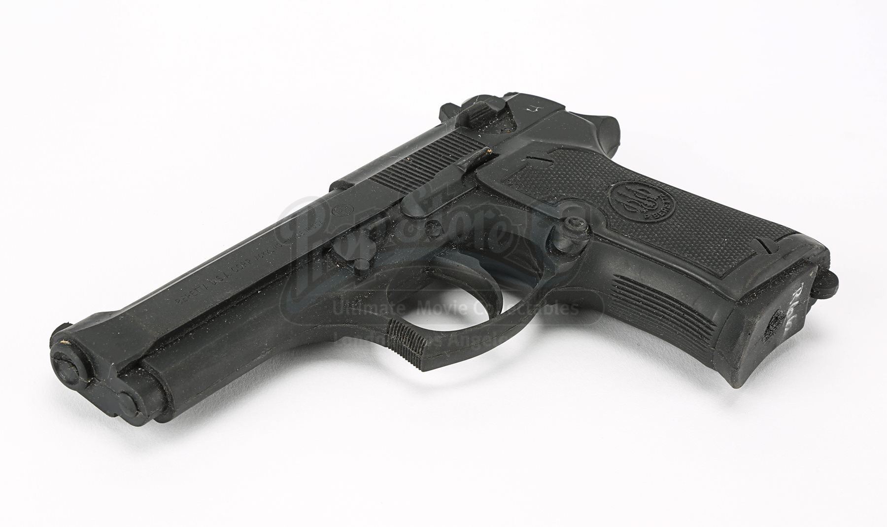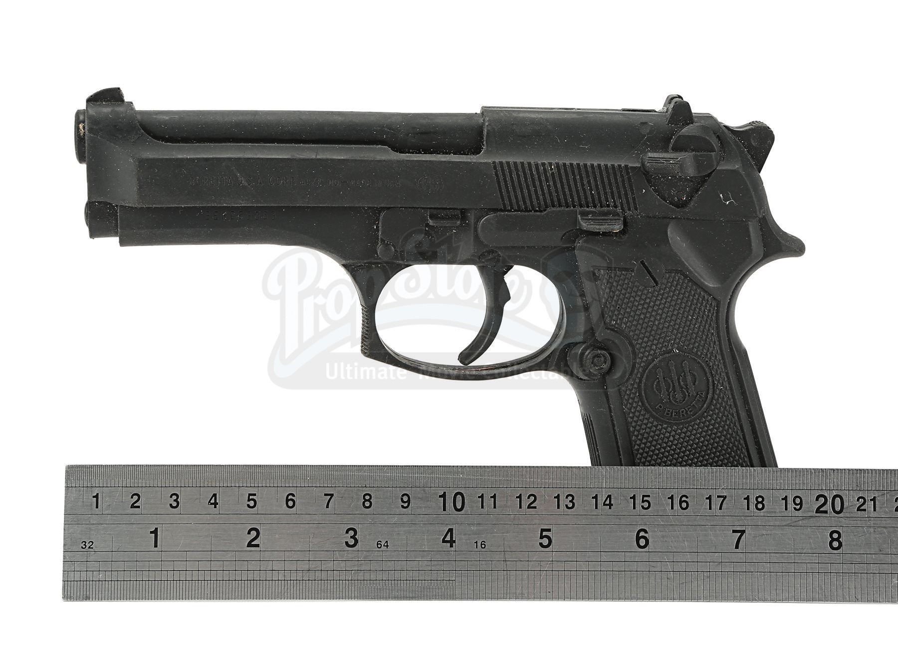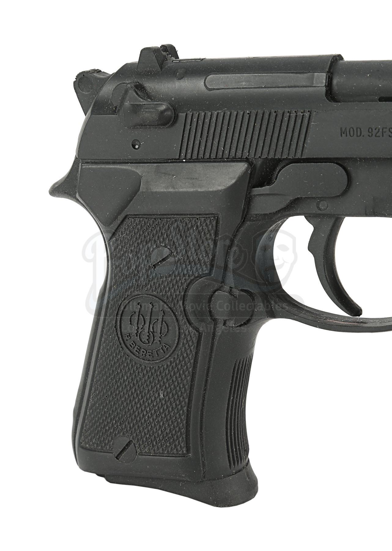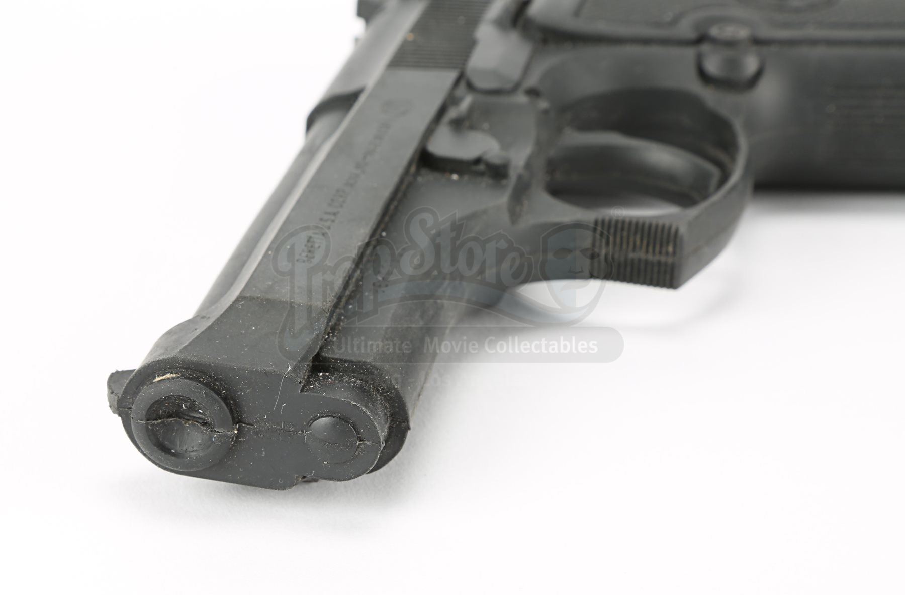 The weapon is a highly detailed mould of one of Trinity’s hero Berettas used in the film, constructed from solid rubber with metal inserts to give it a more realistic weight. Stunt pistols would have been used when it wasn’t necessary to use the hero versions.