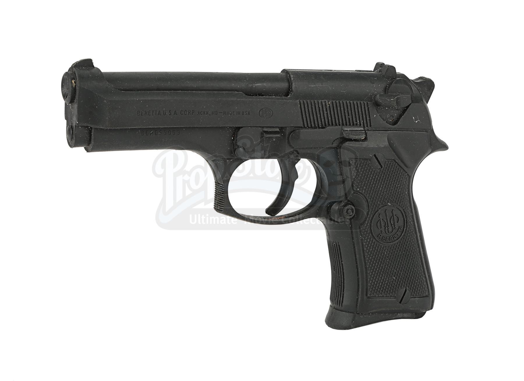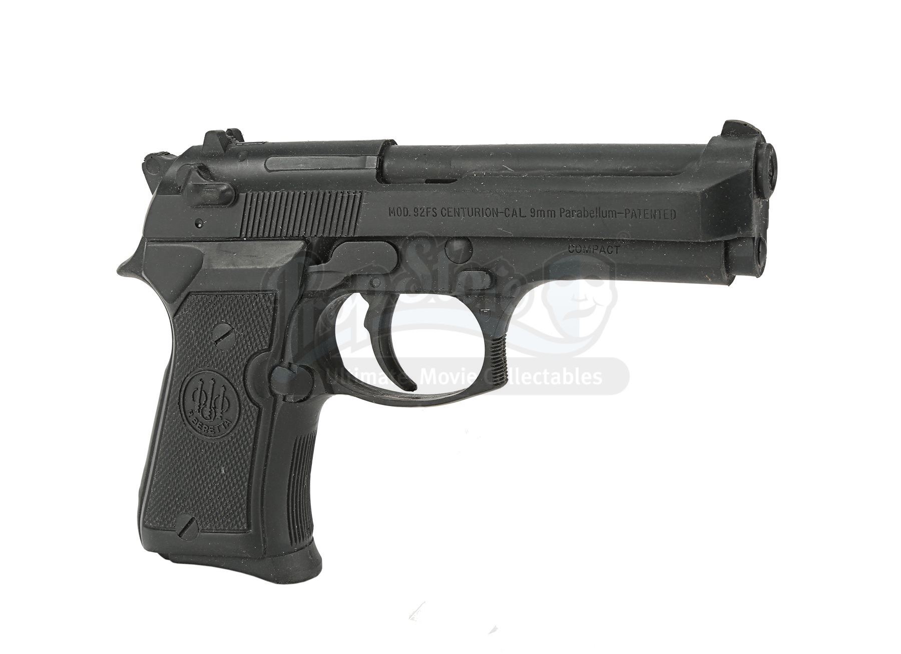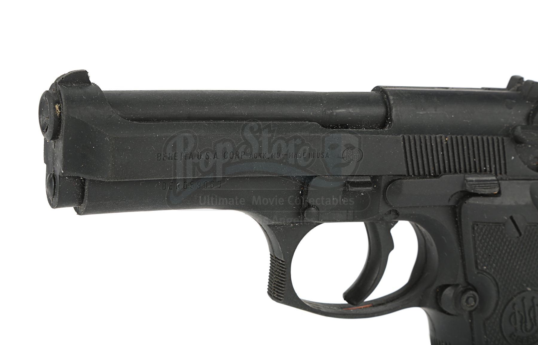 The weapon is a highly detailed mould of one of Trinity’s hero Berettas used in the film, constructed from solid rubber with metal inserts to give it a more realistic weight. Stunt pistols would have been used when it wasn’t necessary to use the hero versions.