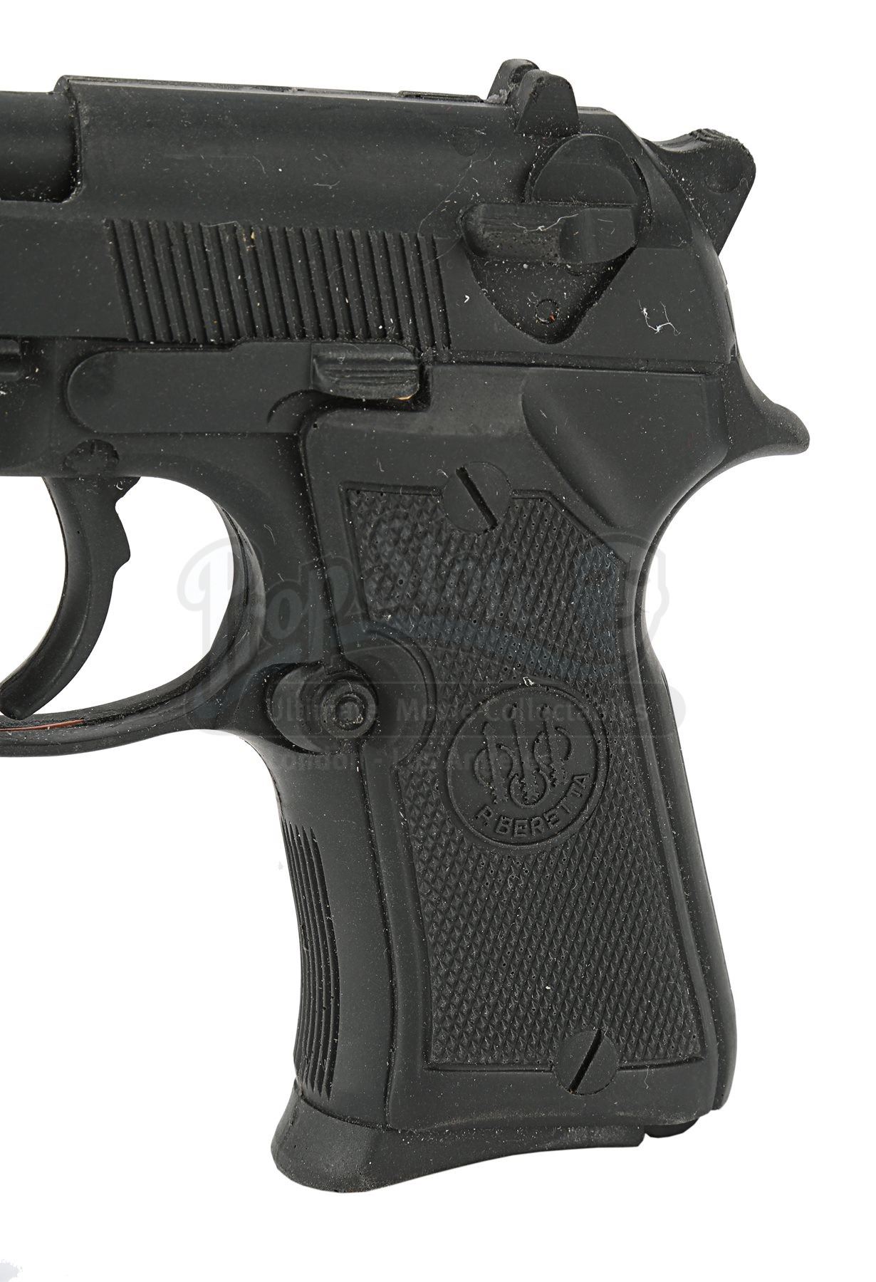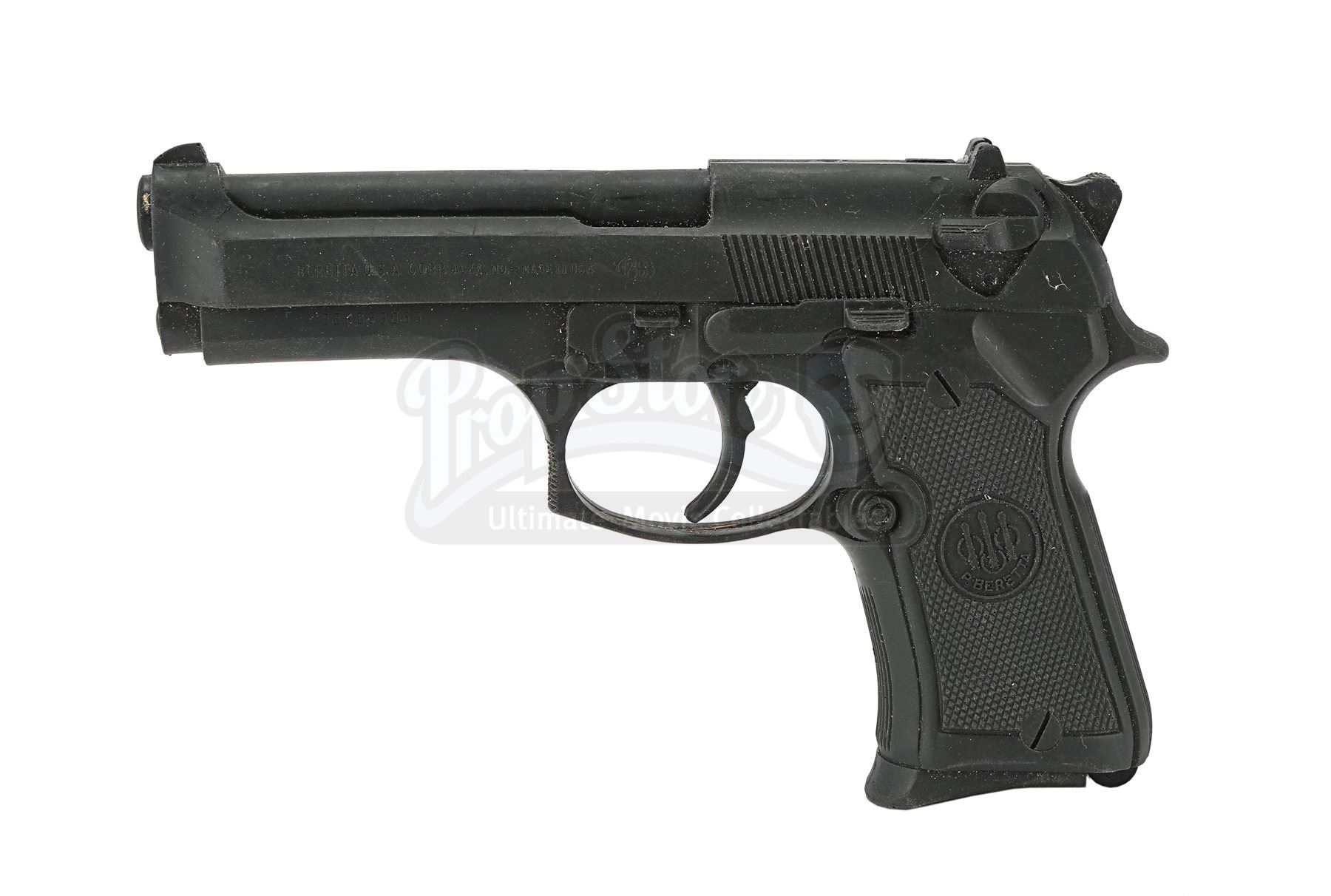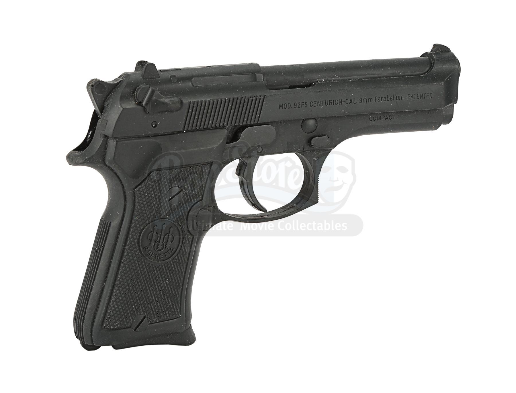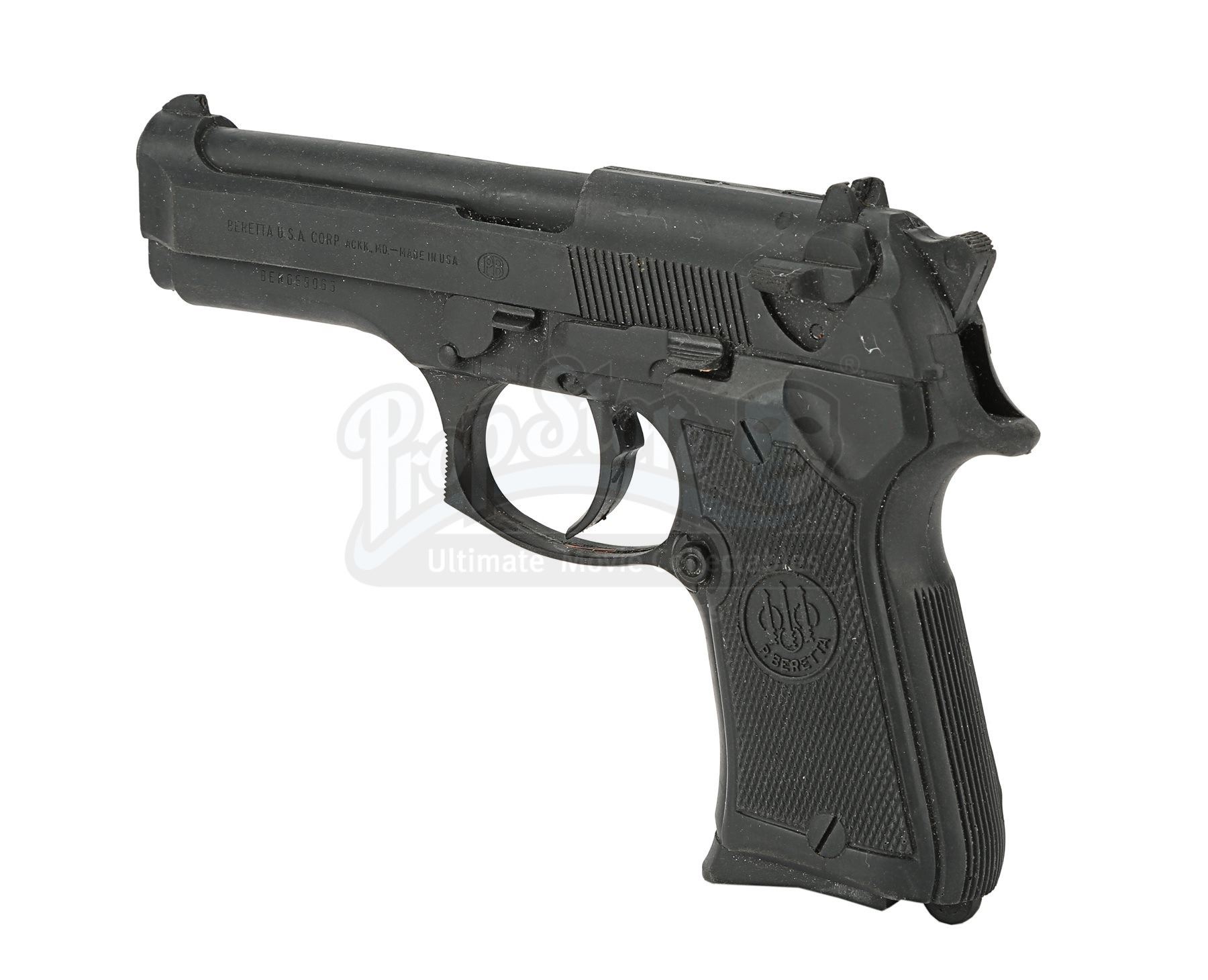 The weapon is a highly detailed mould of one of Trinity’s hero Berettas used in the film, constructed from solid rubber with metal inserts to give it a more realistic weight. Stunt pistols would have been used when it wasn’t necessary to use the hero versions.