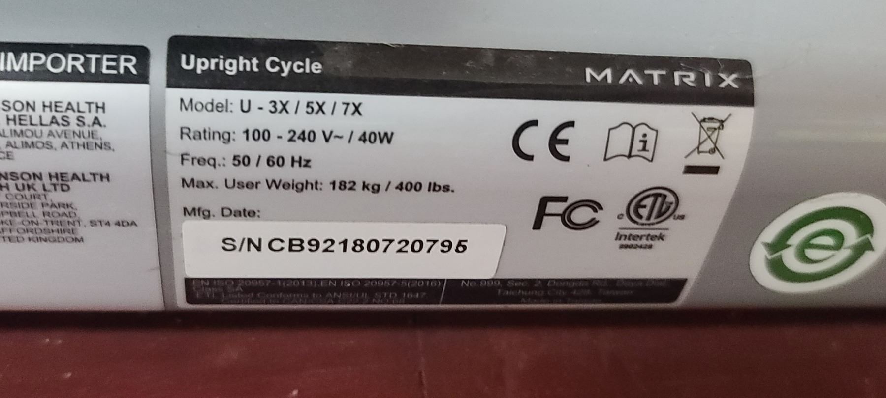 MATRIX UPRIGHT CYLE MODEL G-3X/5X/7X