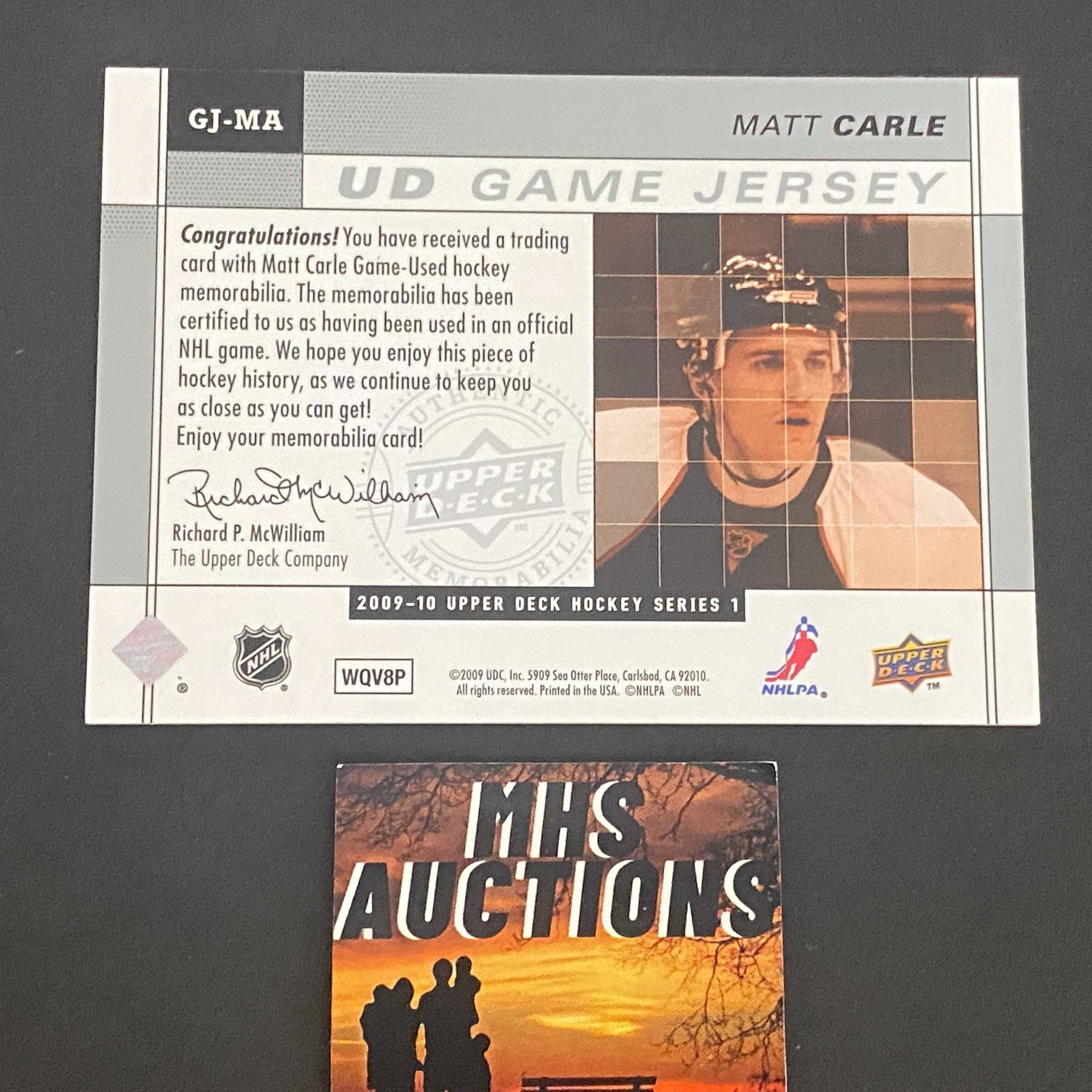 MATT CARLE JERSEY CARD 2009/10 U.D HOCKEY SERIES 1