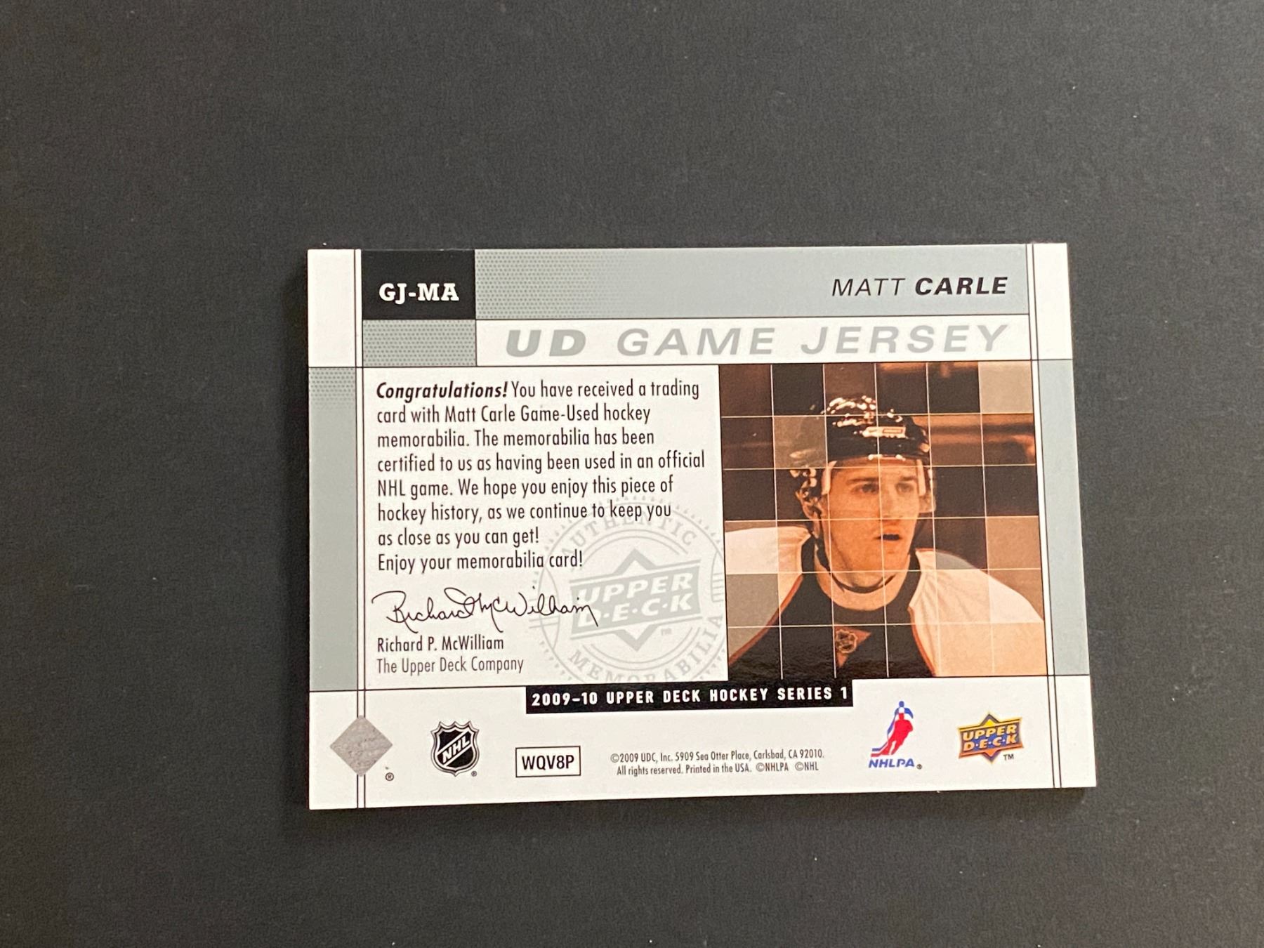 MATT CARLE JERSEY CARD 2009/10 U.D HOCKEY SERIES 1