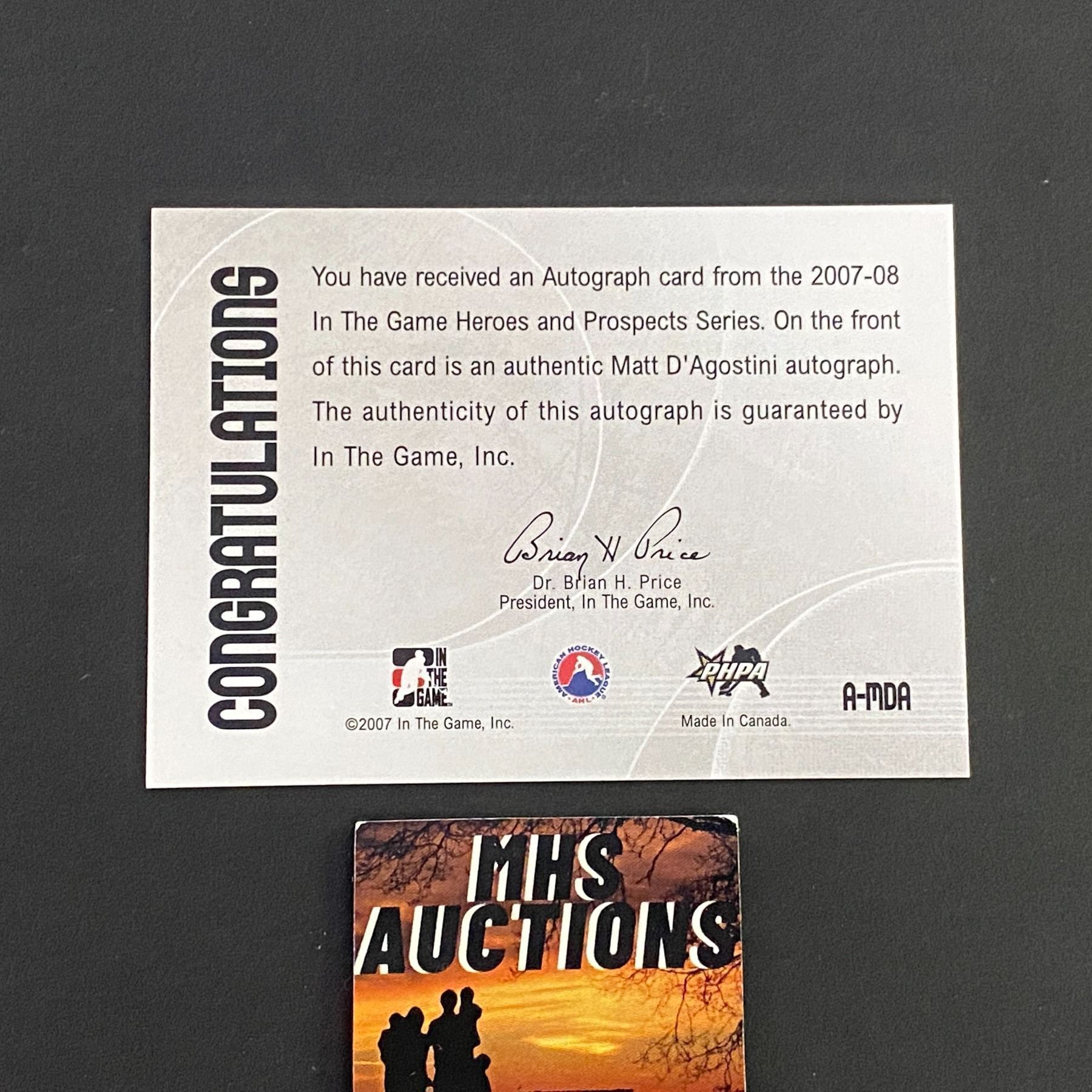 MATT D'AGOSTINI 2007 IN THE GAME AUTOGRAPH HOCKEY CARD