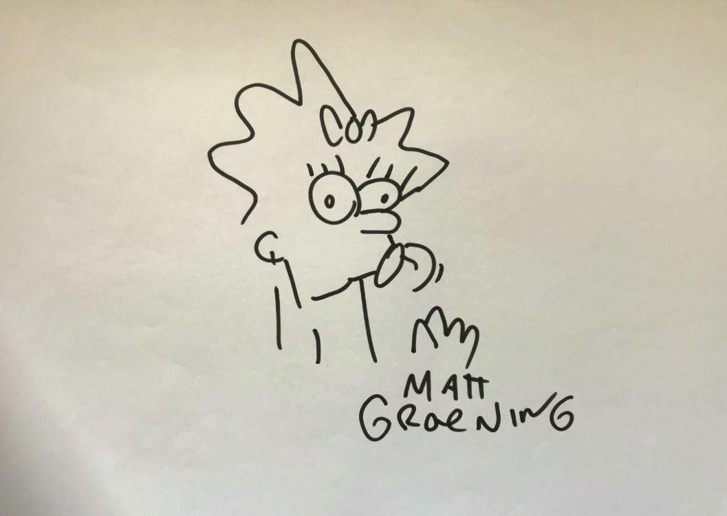 A drawing of the baby - Maggie from The popular cartoon tv series - The Simpsons by its creator Matt Groening. Signed. Size of paper: 16.5x11.75 inches. Supplied with coa.