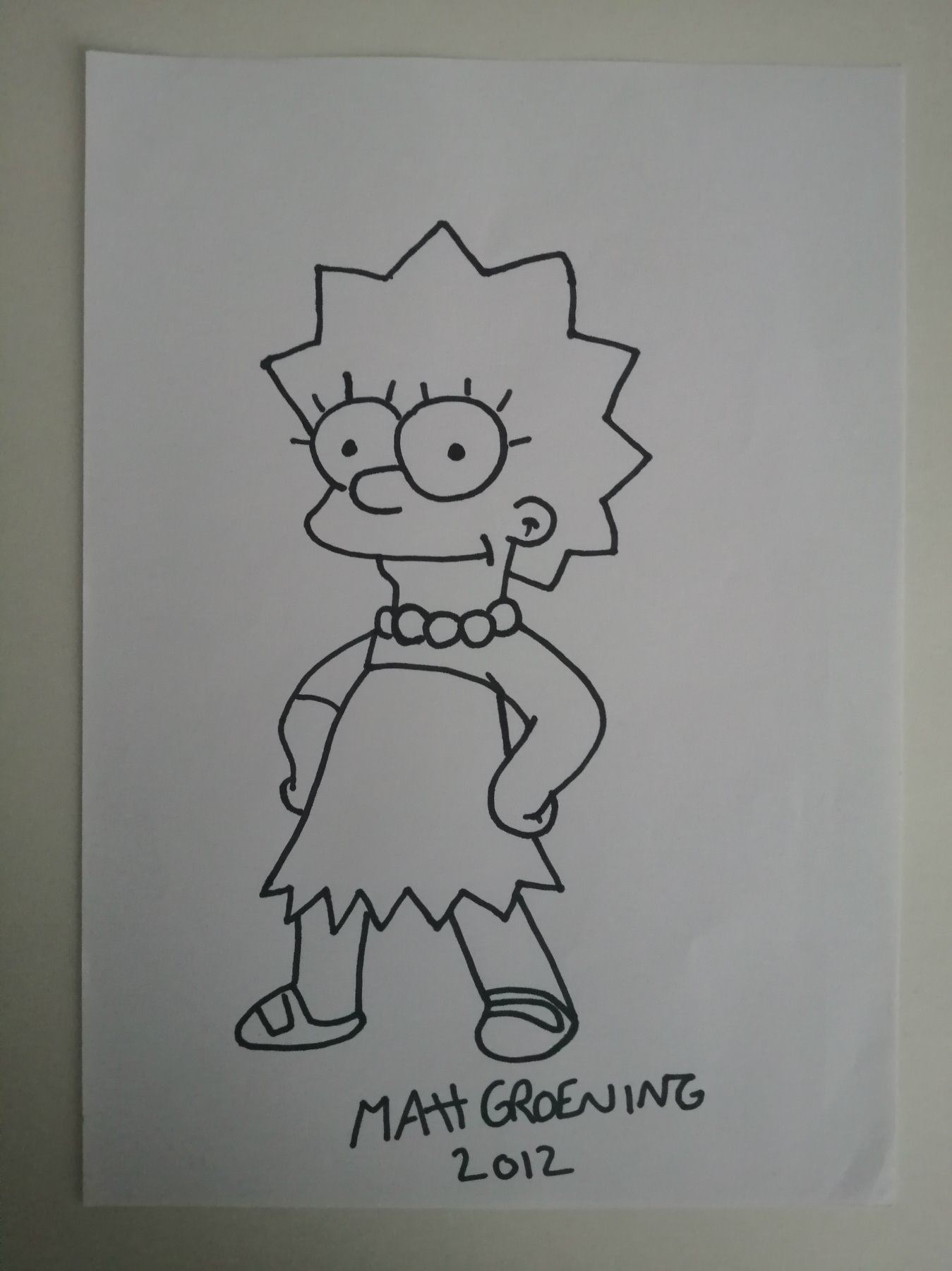 A drawing of Lisa Simpson by Matt Groening on A4 paper by Matt Groening. Supplied with coa. Minor creasing.