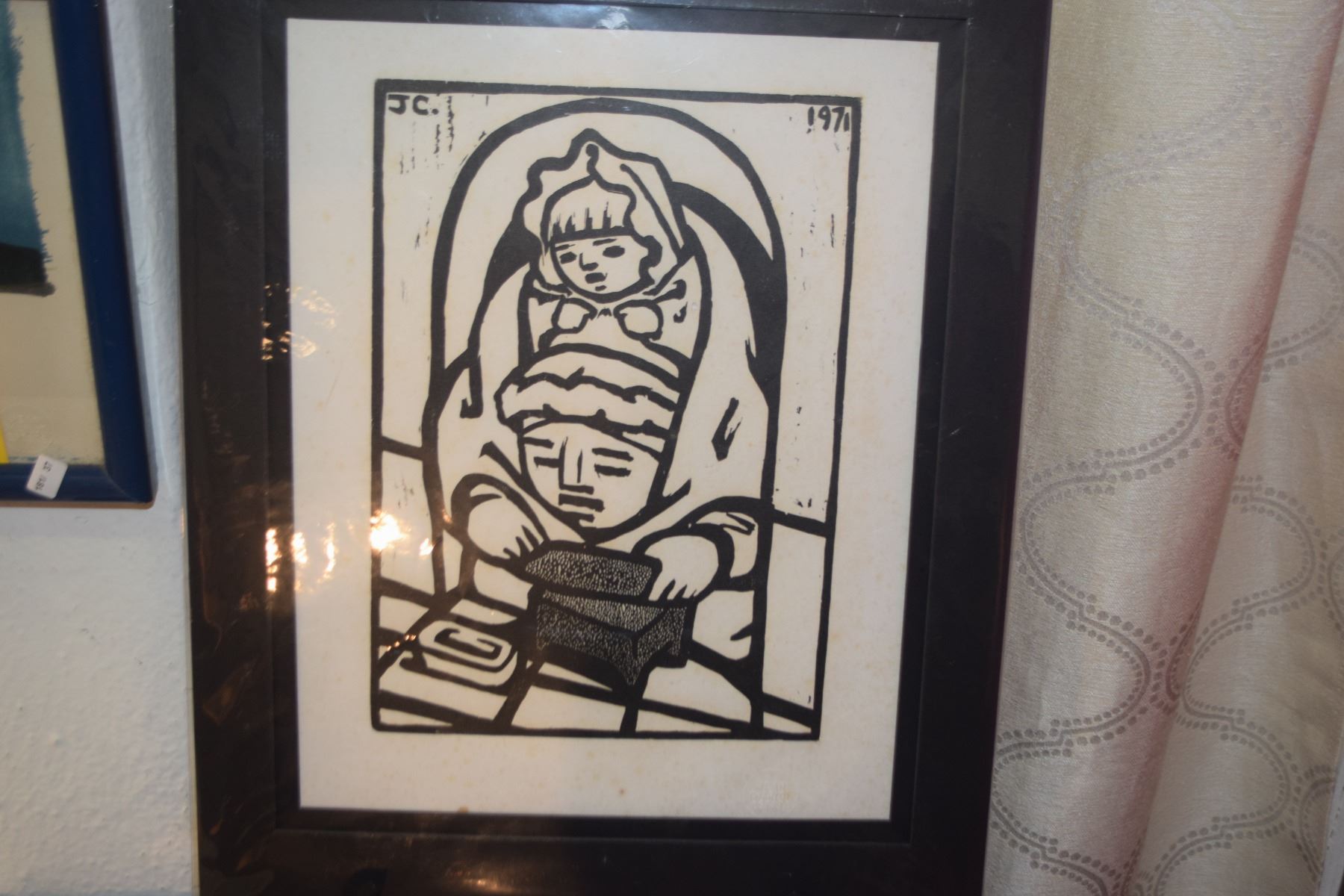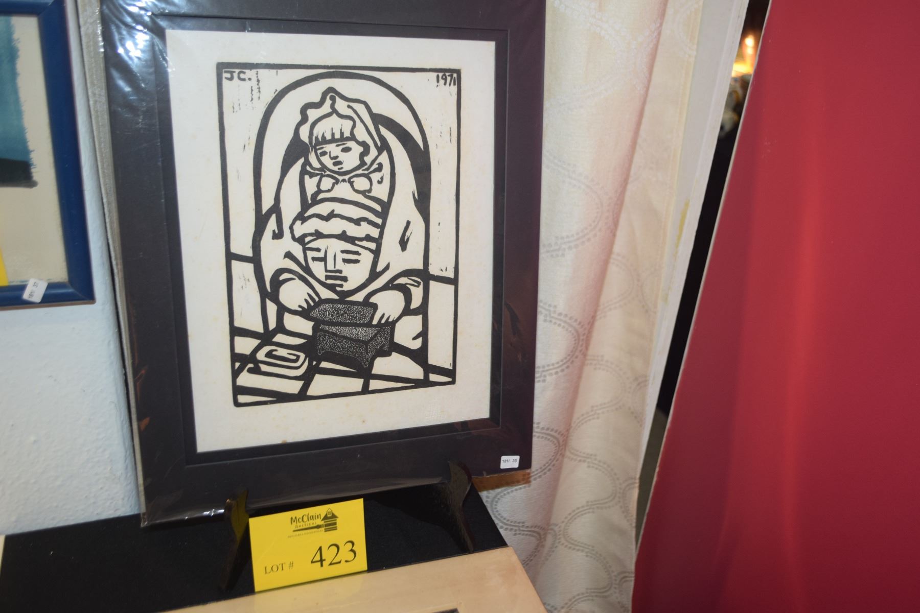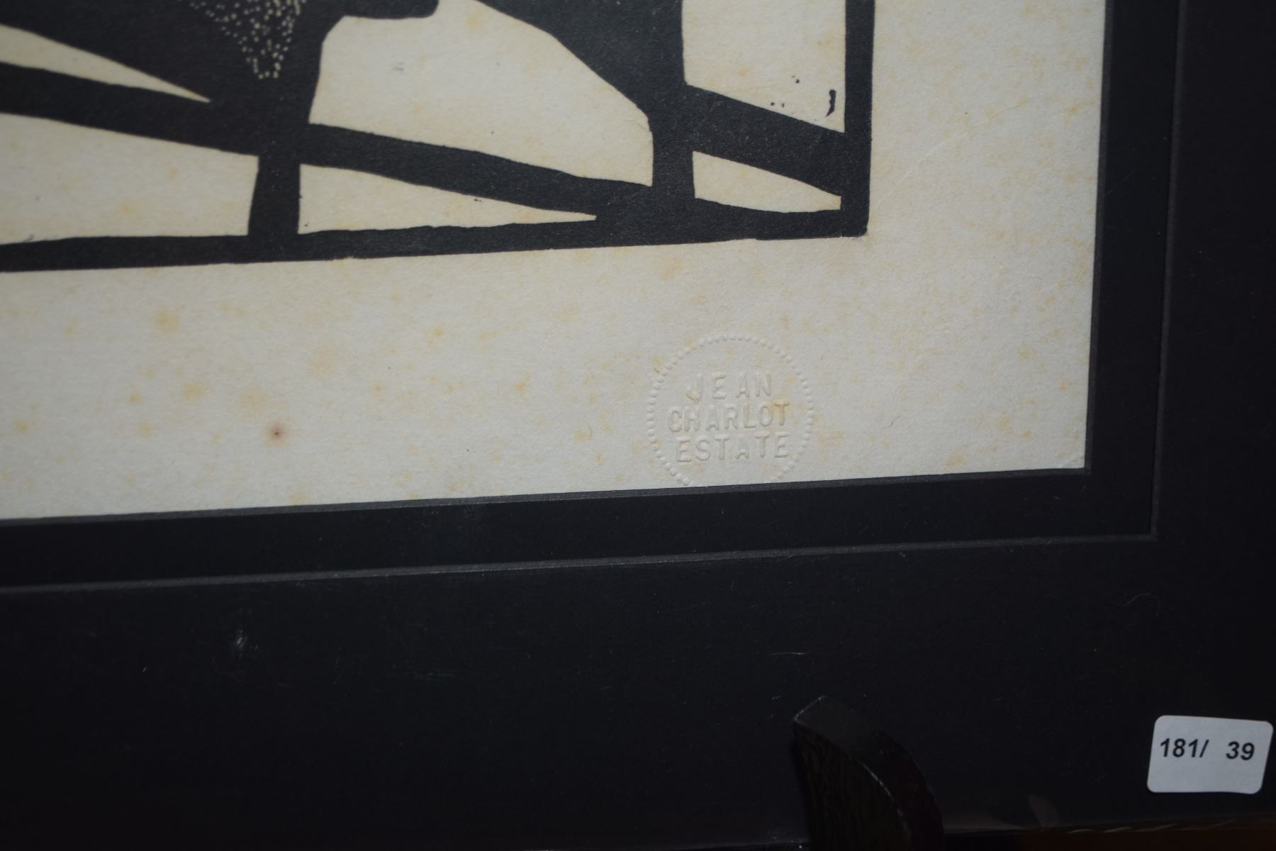 MATTED BLOCK PRINT, "MOTHER & CHILD"; JEAN CHARLOT (14" X 18")