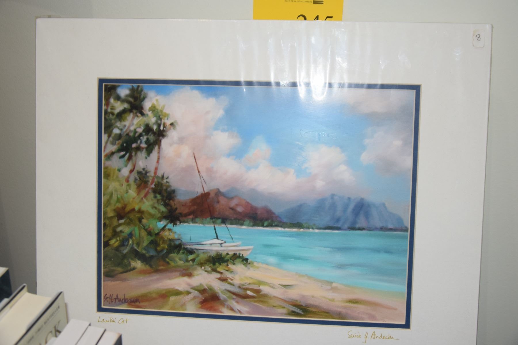 MATTED "LANIKAI CAT" BY SUSIE ANDERSON, SIGNED PRINT (16" X 20")