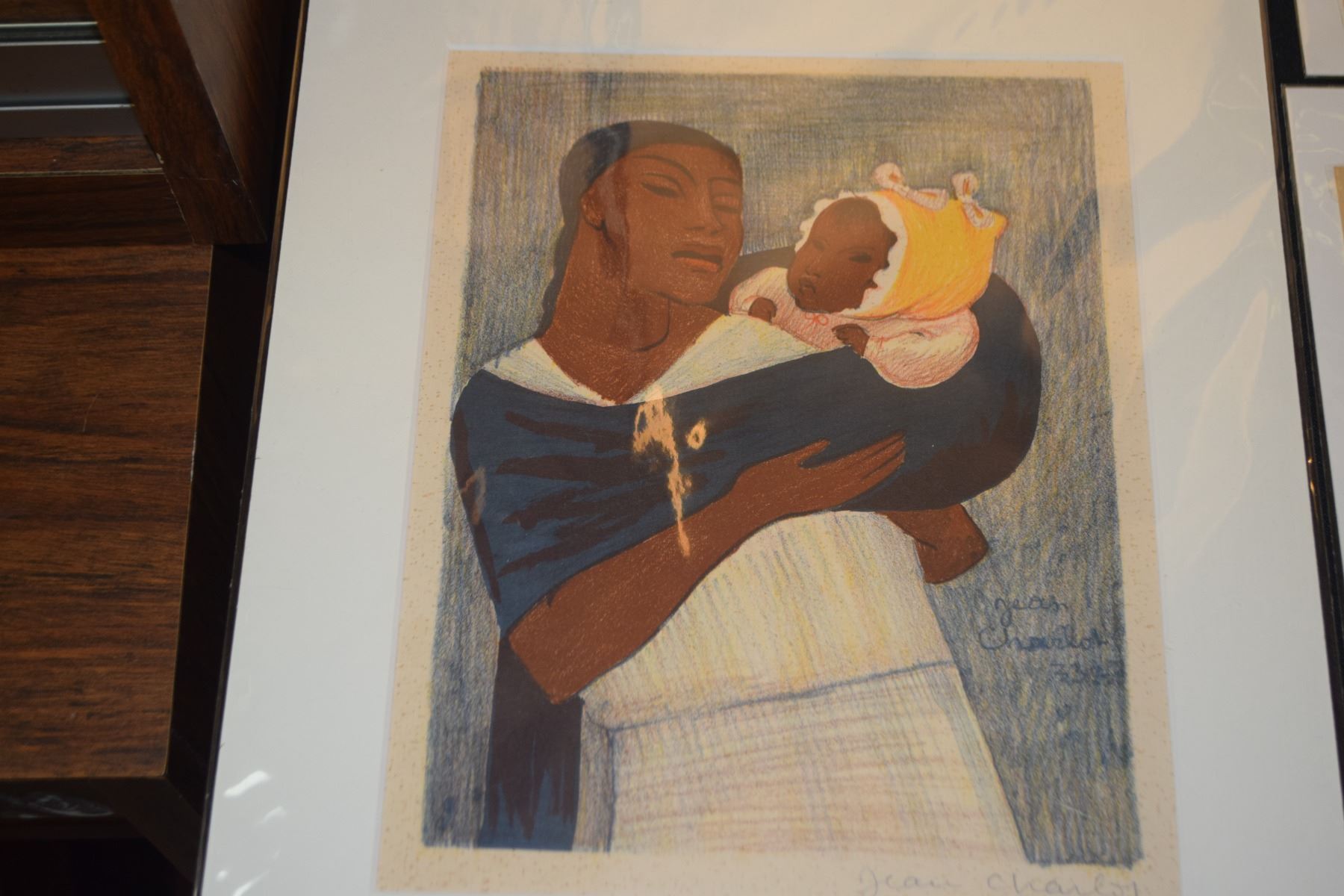 MATTED LITHOGRAPH, "MOTHER & BABY"; SIGNED JEAN CHARLOT (16" X 11")