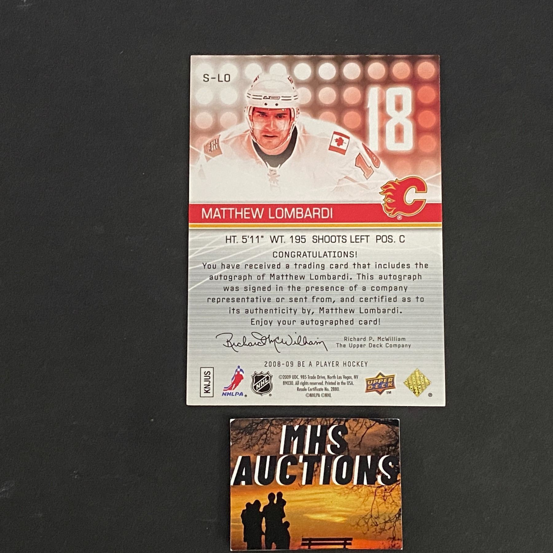 MATTHEW LOMBARDI 2008-09 BE A PLAYER AUTOGRAPH CARD