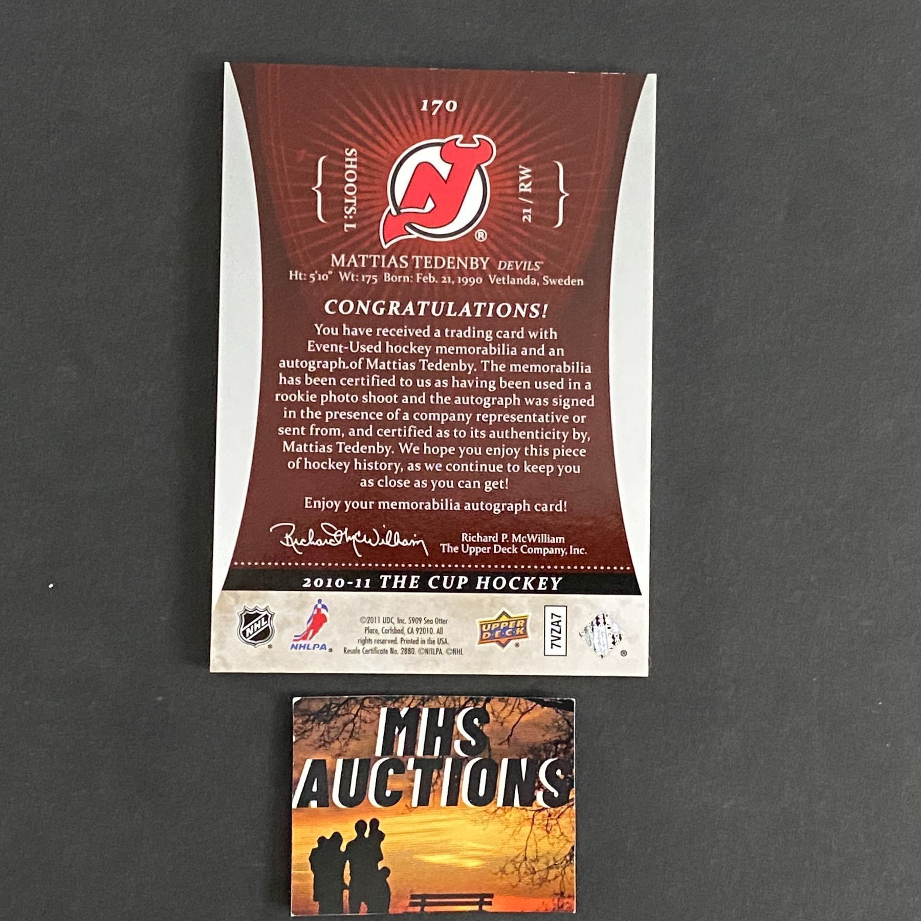 MATTIAS TEDENBY 2010-11 THE CUP JERSEY/AUTOGRAPGH ROOKIE CARD