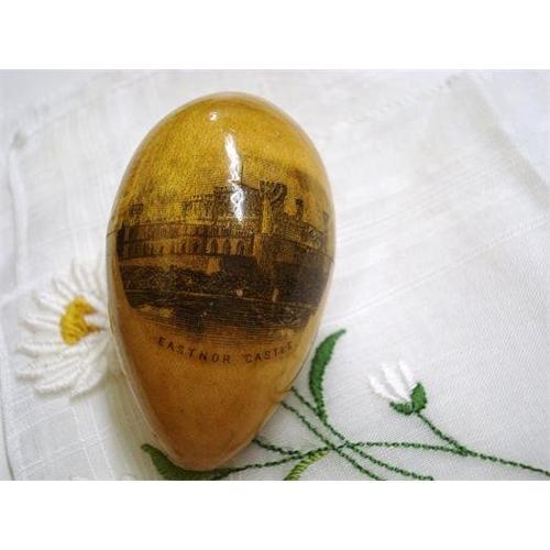 FANTASTIC and RARE SMALL DARNING EGG (GLOVES, CHILDREN'S SOCKS ETC.) AND NEEDLE CASE, ALL IN ONE as per images - THIS IS HIGHLY COLLECTIBLE MAUCHLINE, TREEN WARE STYLE - DEPICTING EASTNOR CASTLE - EXCELLENT FOR AGE CONDITION, no chips, dents or cracks - It measures about 2 1/2 inch long, US Buyer please remit 7.00 for shipping plus insurance.THANKS.