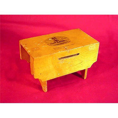 Splendid Antique BURNS Monument & Cottages Mauchline Money Box Mauchlineware Antiques: Accessories: Mauchlineware Tartanware Splendid Antique BURNS Monument & Cottages Mauchline Money Box Mauchlineware Wonderful antique Mauchline ware money bank! This is a beautiful example of this well loved and collected Scottish woodenware. The scene is of the BURNS MONUMENT & COTTAGE HOMES, MAUCHLINE Heaven Keep You Free Frac Care & Strife. The moneybox is a table with drop leaves on both sides, one having the slot for the money. Under the footed table is a ?secret? slide that enables one to get to the money. The lovely honey colour finish has a few small chips, but not detracting as can be seen in the images, otherwise in great condition. It measures about 4 ½ inches by 2 ½ inches standing about 3 inches high. A beautiful addition to one?s mauchlineware or Burns or money bank collection.