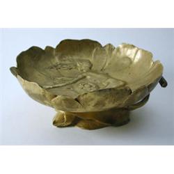 Bronze, vergoldet. Im Spiegel reliefiertes Dekor einer Elfe mit langem Haar. Als vollplastisches Blattwerk ausgebildeter Fuß mit zum Schalenrand gewundenem, einen Henkel bildendem Stengel, reliefierter Schalenkorpus in Form einer Seerose. Vergoldung äu. min. ber. 9,4 x 24,5 x 20 cm. Unter dem Stand bez.: Mod.Nr. 55053, im Schalenrand signiert M. Bouval. Um 1900 Lit.: Duncan, A., The Paris Salons 1895-1914, Volume V: Objets D'Art & Metalware, Aberdeen 1999, Abb. S. 126-129 (zum Vergleich)