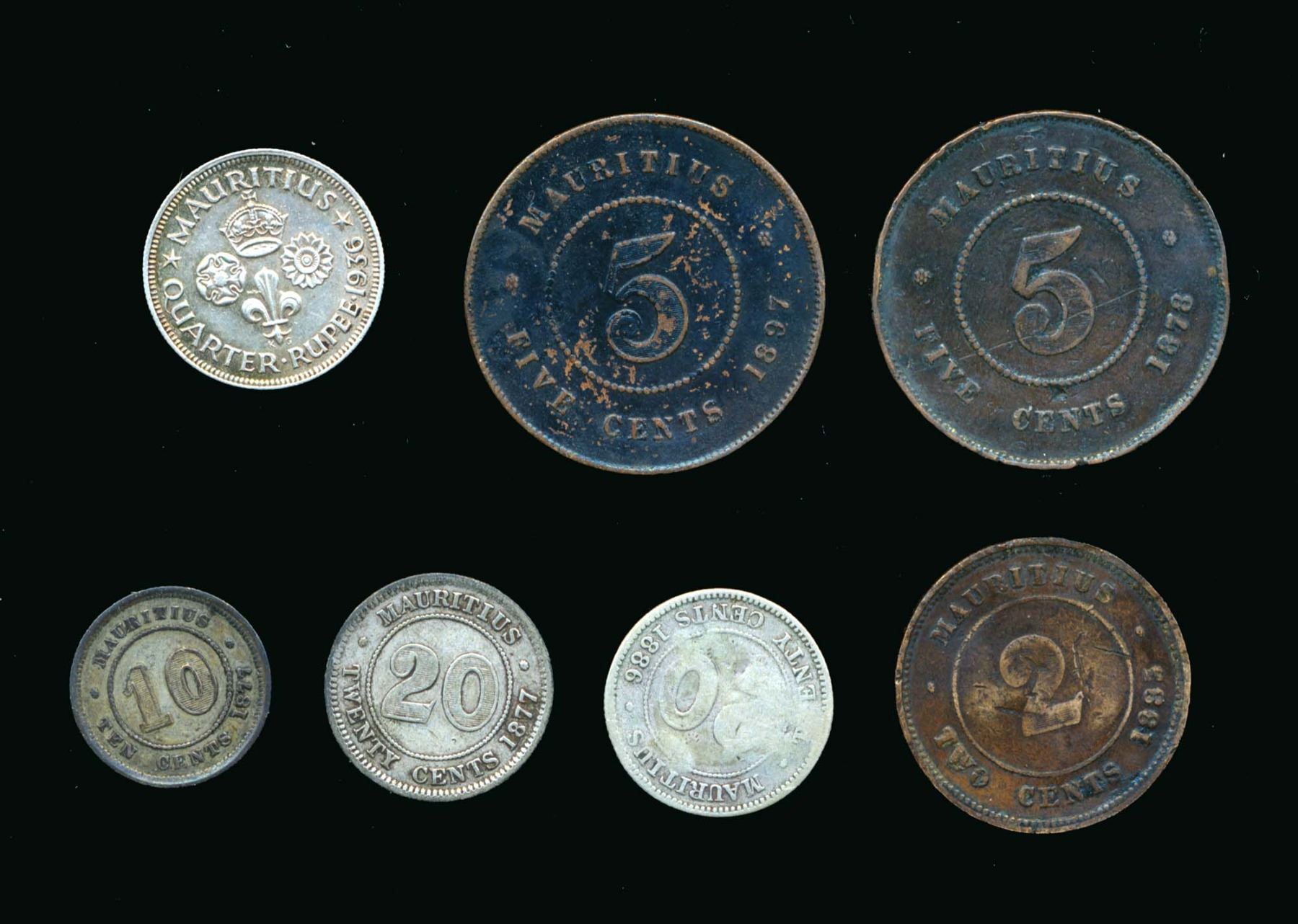 ÎLE MAURICE 1883-1936 Un lot de 7 pièces avec plusieurs dénominations VG-EF