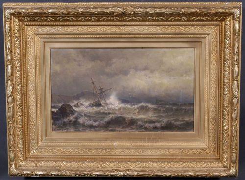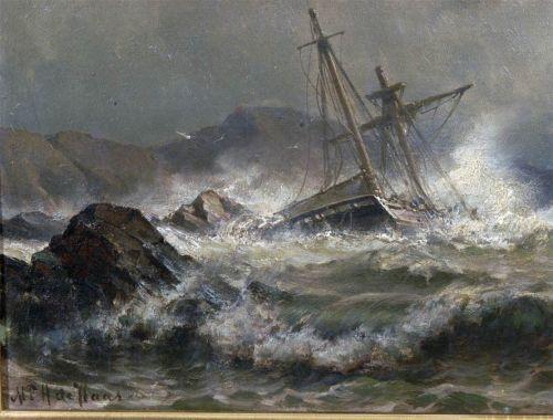MAURITZ F.H. DEHAAS "The Rescue" 12"x20" oil on canvas signed lower left, condition: excellent.