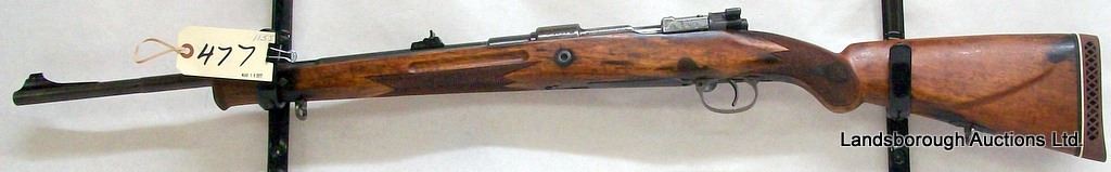 NON-RESTRICTED, BOLT ACTION, 7MM MAUSER, 22" BARREL, SN 8828. WOOD HAS A COUPLE CHIPS, BLUING IS GREY, BORE DARK.