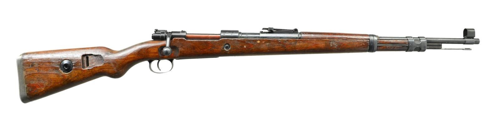 Cal. 8x57. S# 1302c. Standard configuration. Early wartime production w/ eagle proofs & maker's code "660" & "1940" on receiver ring. Numbers are mixed. Bbl. does match action. Bolt w/ action number electropencil on left. Laminated stock w/ steel buttcap is stamped "1112" on left side. CONDITION: good as refinished. Metal parts w/ renewed blue over marks, scratches & some light pitting. Action has heavy varnish finish over many marks. Good bore, lightly pitted throughout. Mechanically good. PROVENANCE: from the estate collections of Charles P. Obremski. (22-1331/MGM). CURIO. $300-500.