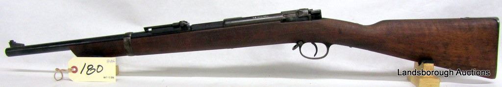 NON-RESTRICTED, SINGLE SHOT, 43 MAUSER, 19 1/2" BARREL, SN 5606. WOOD HAS SOME DENTS AND SCRATCHES, BLUING TURNING BROWN, BORE HAS SOMR PITTING. BARREL CUT DOWN, BOLT DROPS OUT.