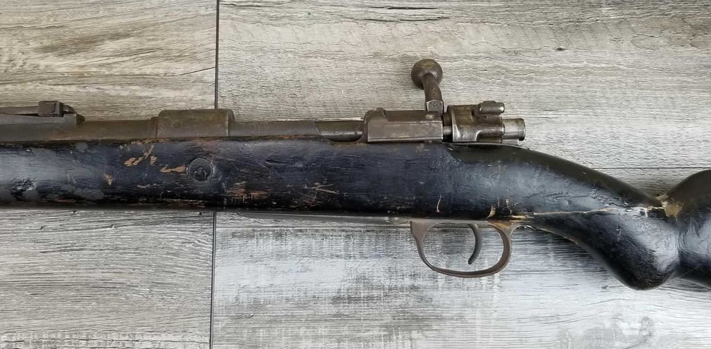 STOCK IN ROUGH CONDITION. RECEIVER DATED "1936". HAS NAZI MARKS. VISIBLE NUMBERS MATCH.