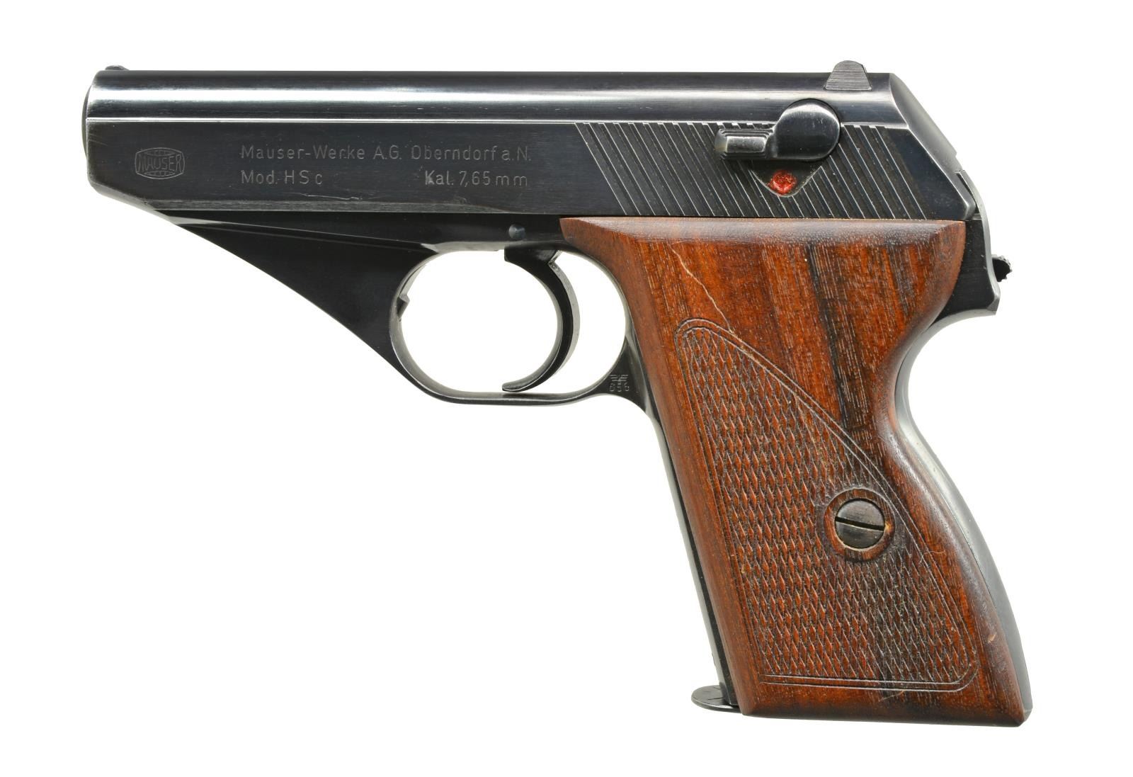 Cal. 7.65mm (32 ACP). S# 737342. Bbl. 3.4". Eagle 655 proofed on trigger guard plus eagle M on slide. Early gloss finished army model. Checkered walnut grips. MAGS: 1 very good Mauser marked 8 rd. w/ small dent in base. UNATTACHED ACCESSORIES: factory manual. CONDITION: good to very good bore w/ hint of frosting. Very good finish w/ occasional spot of pinprick oxidation & slight high edge wear. Very good grips. (20-1454/NW). CURIO. $400-600.