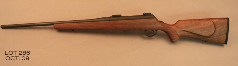 MAUSER Model M96 American bolt action rifle, # 96012496, .270 cal., matte black finish, 22” barrel, scope mounts, checkered walnut stock. Rifle is in excellent condition with original box. A recent production Mauser rifle in a greatcaliber. Est. $200-$400.