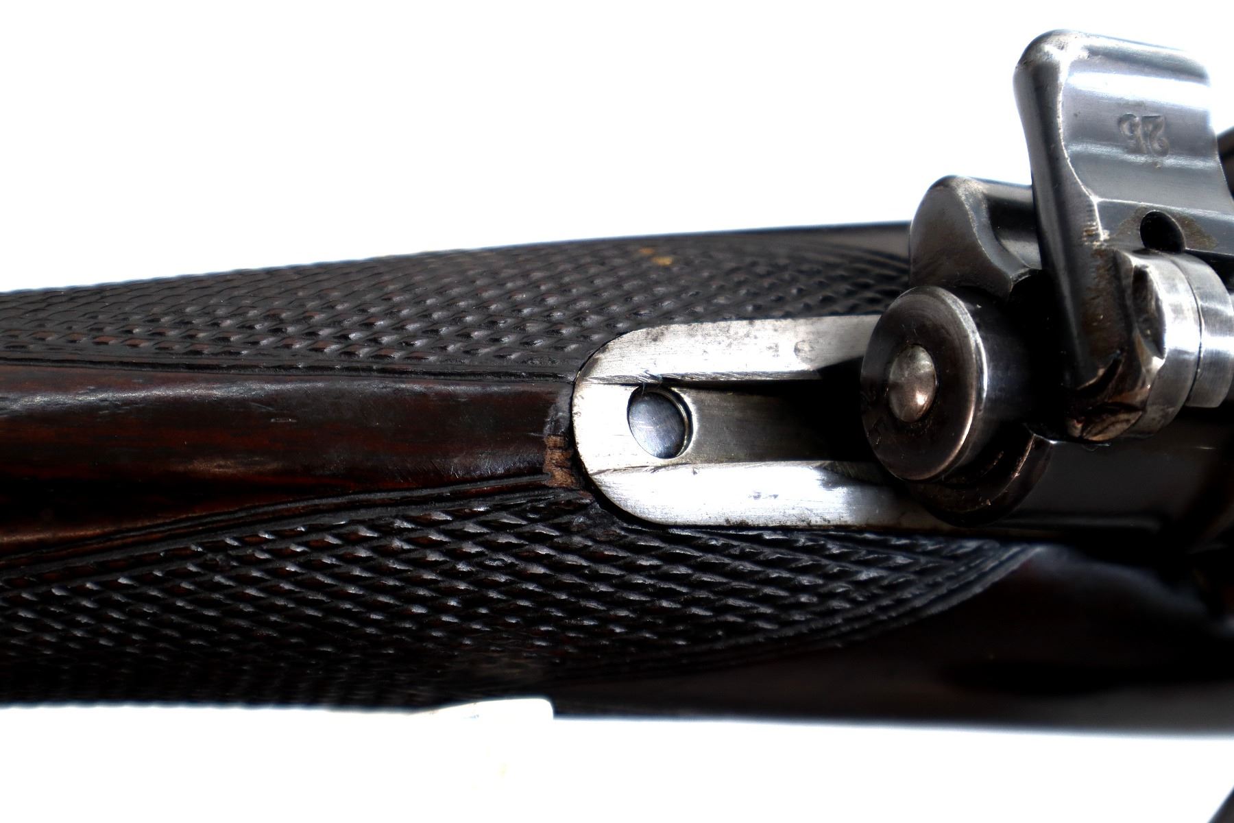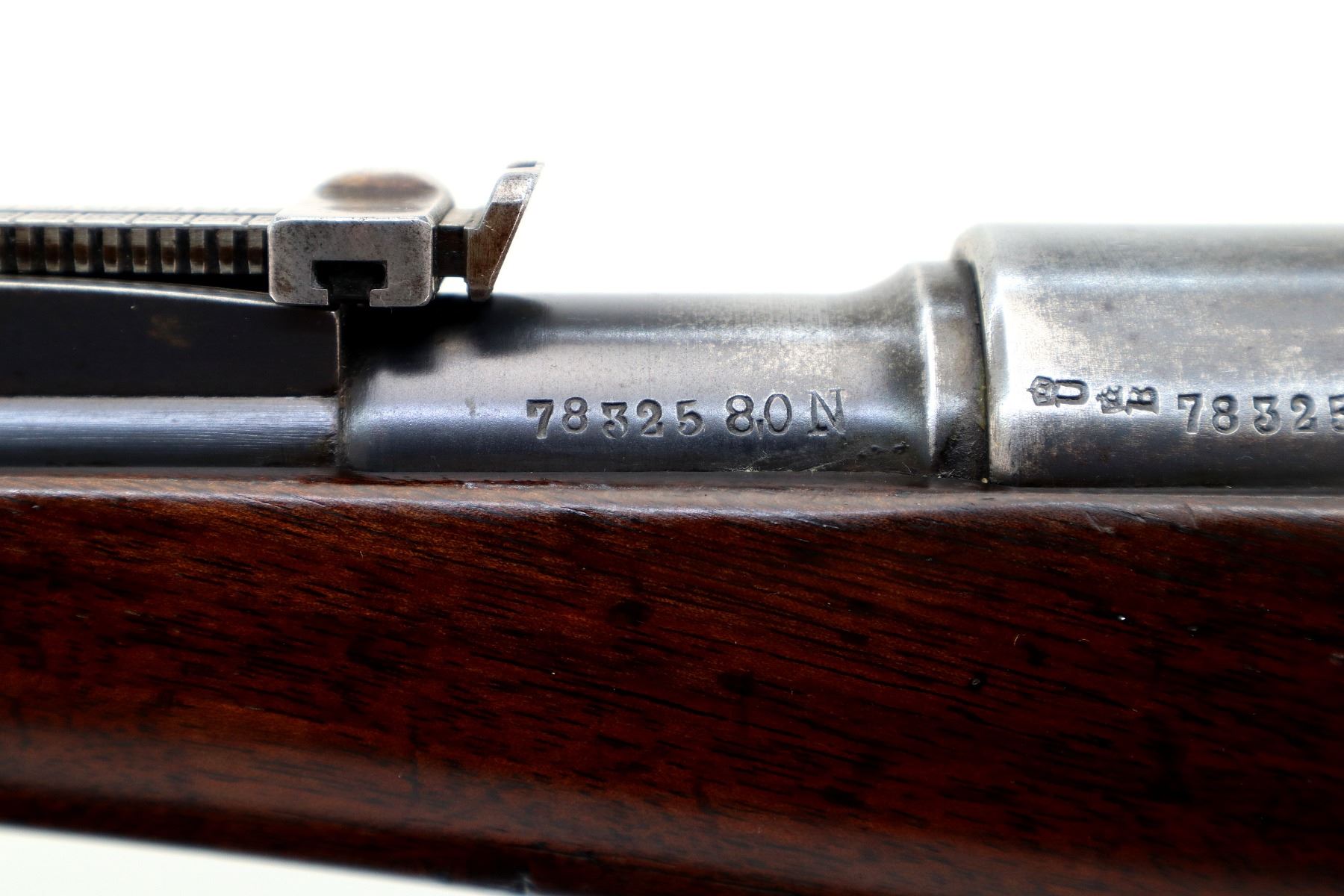 Wear: Metal finish shows a few light rust speckles, scratches, handling marks and wear. Stocks show some marks, scratches and wear.