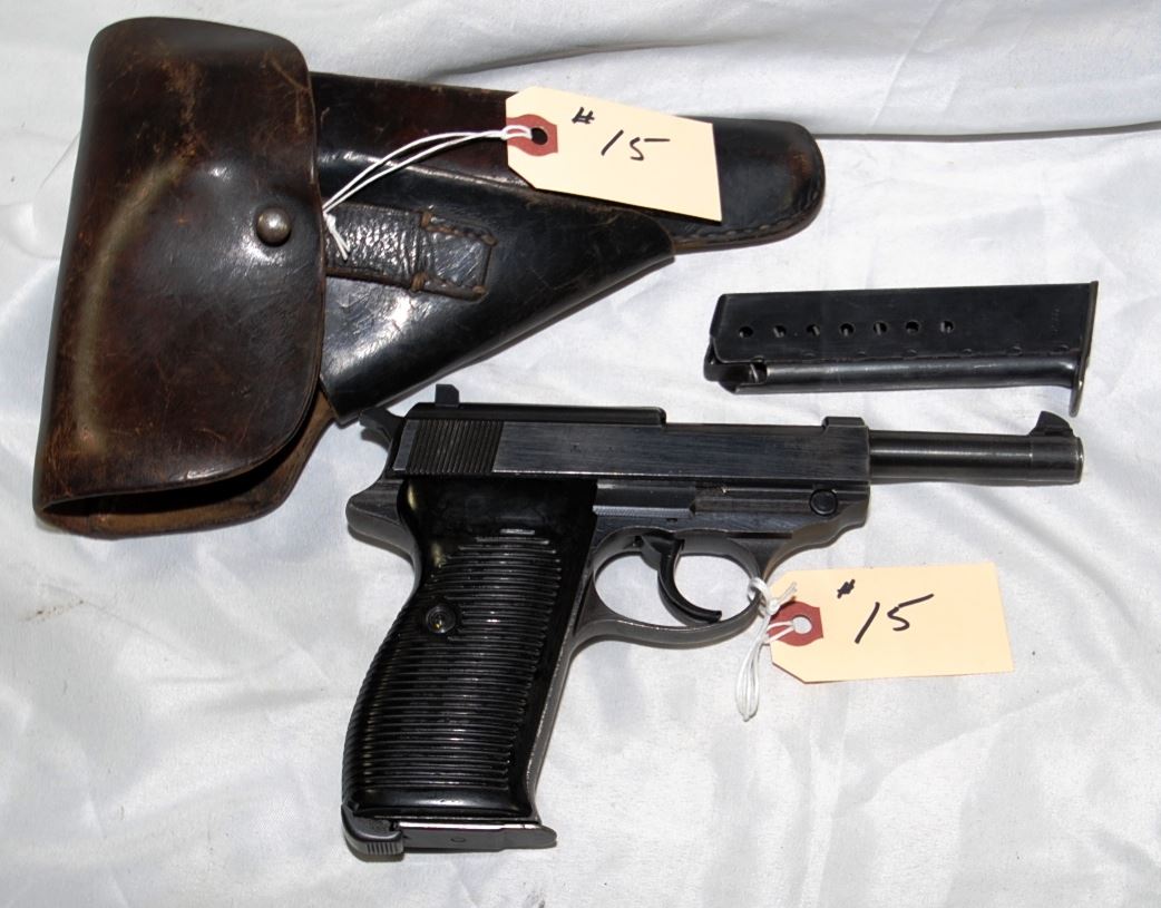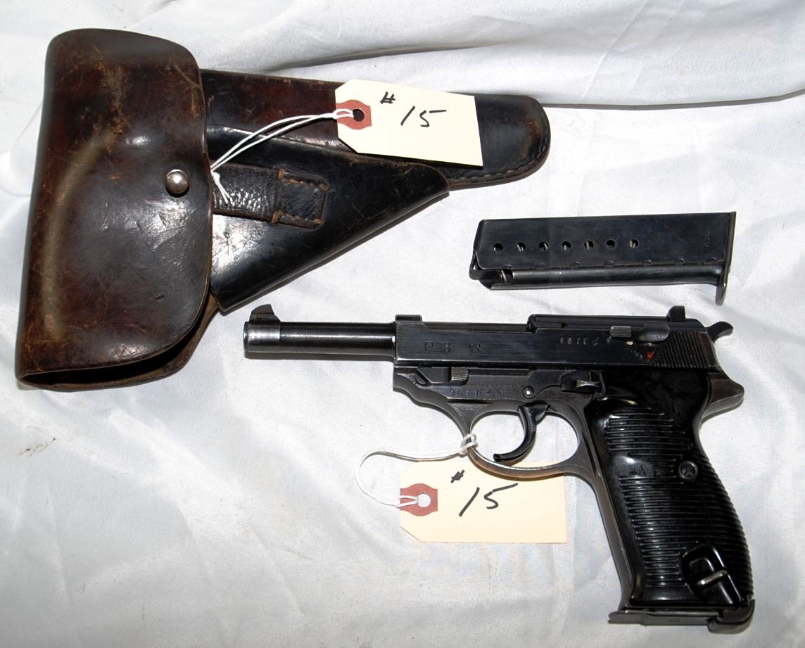 MAUSER P38 9MM WW 2 NAZI PISTOL - MARKED BYF43, NAZI EAGLE 135, SERIAL # 9677 WITH TWO CLIPS AND ORIGINAL HOLSTER