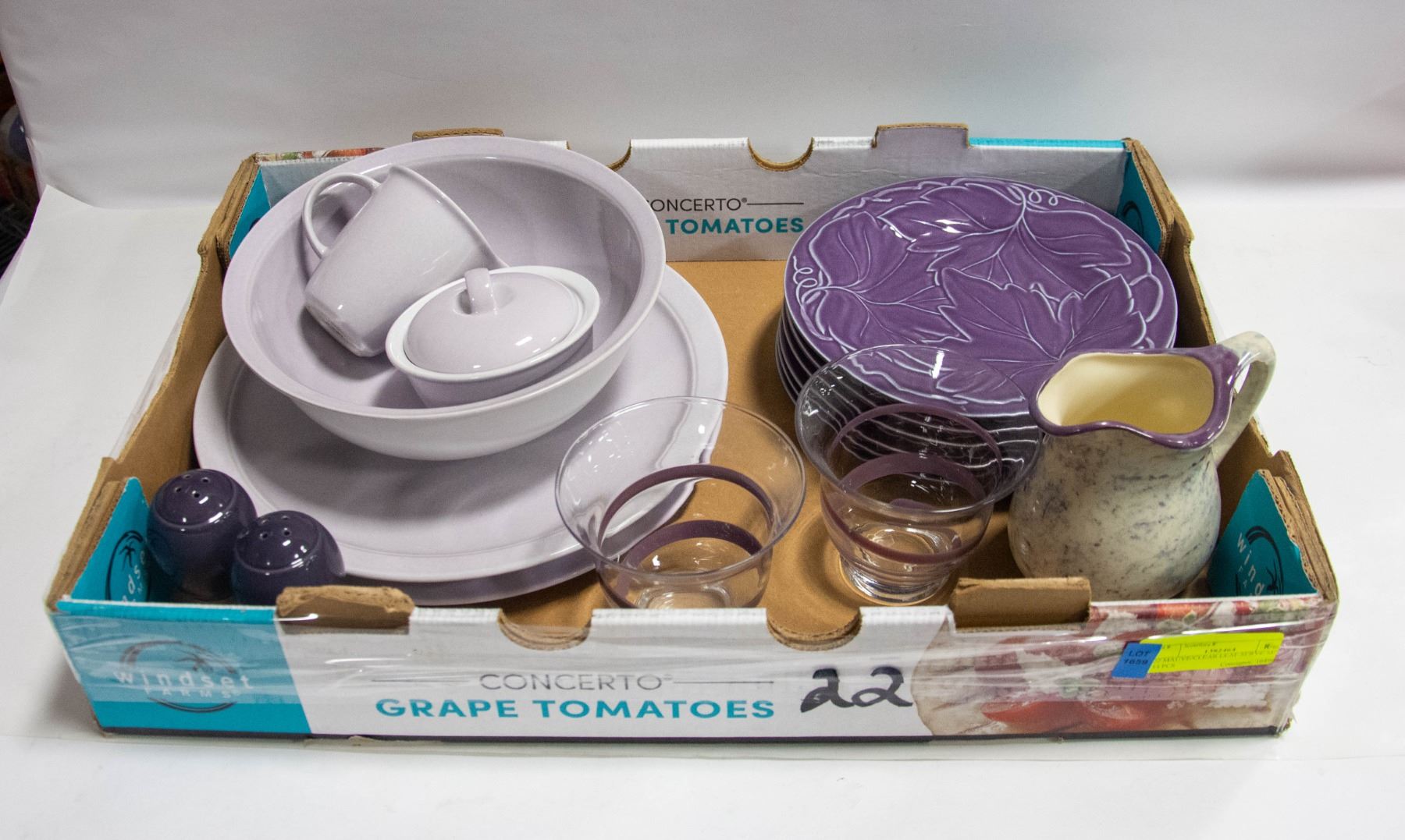 MAUVE/CLEAR LEAF SERVE SET 14 PCS
