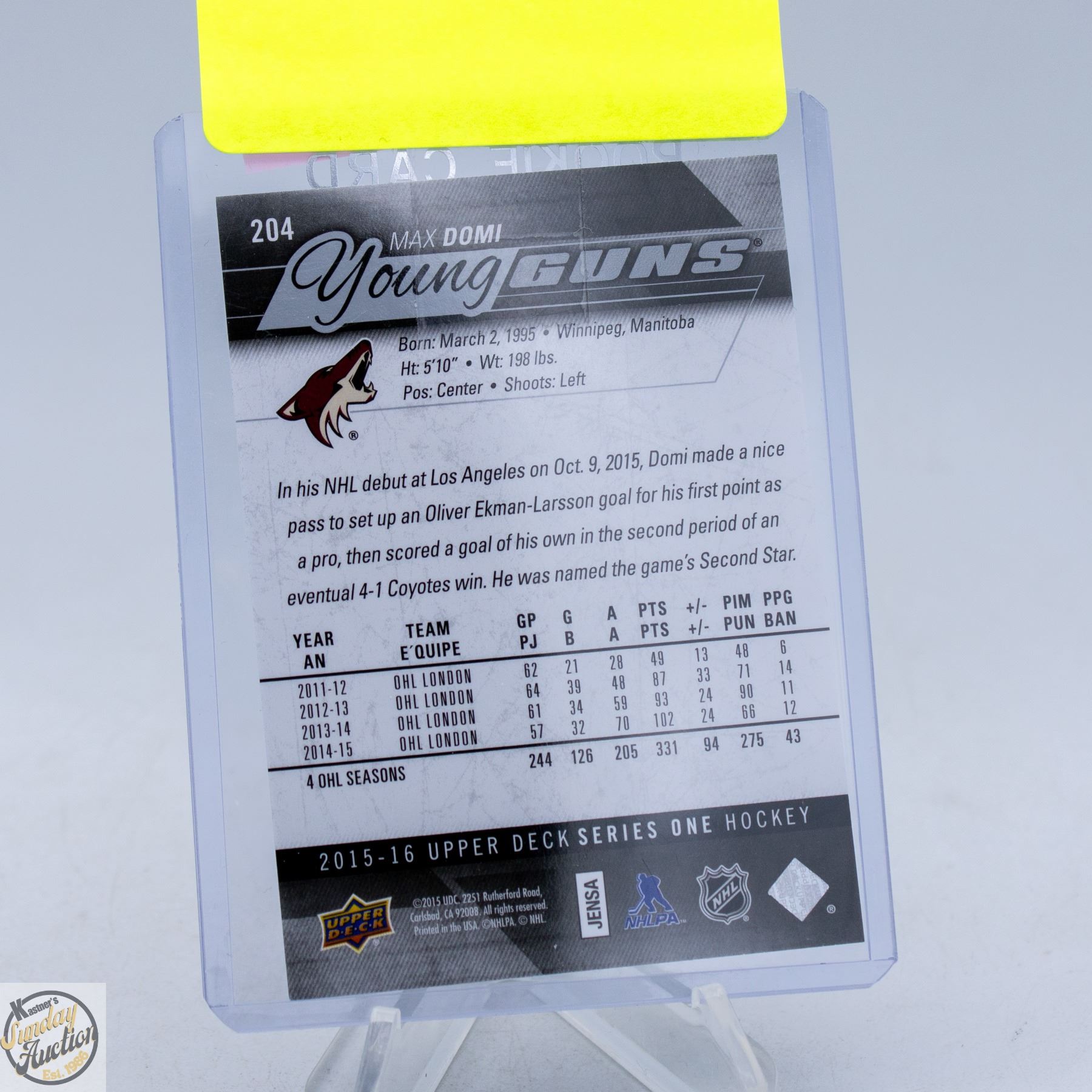 MAX DOMI ROOKIE YOUNG GUNS UD