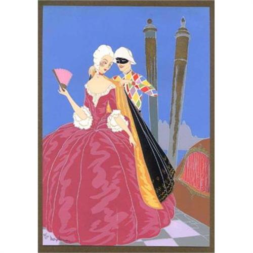 Beautiful 1920's original Serigraph from Verdi's opera Rigoletto. The Serigraph is affixed to heavy stock brown paper sheet on the top, this sheet is mounted (also on the top) to another grayish brown backing sheet. This backing sheet is inscribed IL RITORNO DAL BALLO. All original - including transparent dust cover on the front. Overall dimension is 16-1/2" x 12-1/4". Grey backing sheet is very fragile, shows age deterioration. However, it may be replaced (if desired) before framing. Serigraph is signed Max Ninon, numbered and in MINT condition. Vittorio Accornero de Testa (1896-1982) was born in Casale Monferrato, Italy. Before the WWI he had established himself as a book illustrator and painter using the name VICTOR MAX NINON. In 1925, his color pochoir won the Gold medal at the International Exposition of Decorative Arts in Paris. This important exhibition introduced the Art Déco style. By the 1930's, he returned to book illustration and his original name. Vittorio Accornero illustrated the best loved versions of Pinocchio, Grimm?s Fairytales and books by Hans Christian Anderson. During his long career Accornero also designed sets and costumes for the theater and movies as well as La Scala in Milan. In 1966, he was contracted by Gucci to design fabric for women's handbags. His floral design is still in production today. Other Serigraph form this series (IL DOLCE BIGLIETTO) is listed separately.