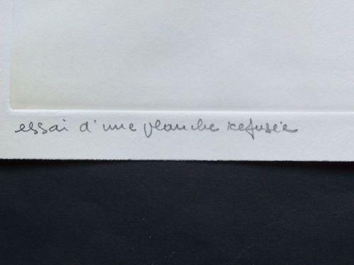 as well as Hand Inscribed in pencil "essai d'une planche refusee" (Trial, of a delclined plate).