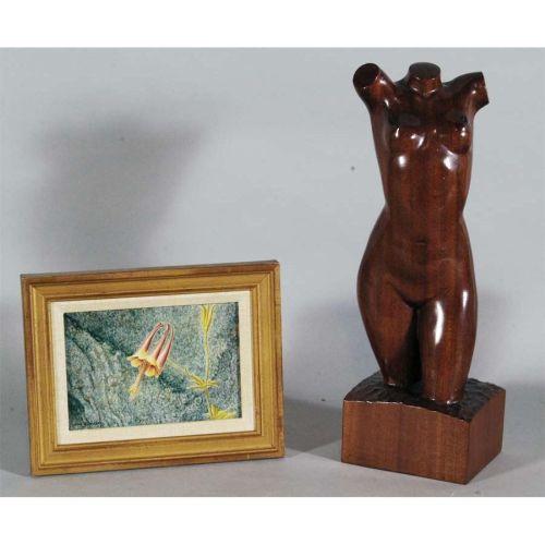 1 MAX STANDLEY Columbine, 5"x7" o/b together with ADLAI HARDIN CARVED TORSO, 15" high CONDITION REPORT: excellent. PACKING AND SHIPPING (excluding insurance) by Fairfield Auction to points within the Continental U.S.A. and Canada (all other international must be handled by 3rd party shipper) $30.