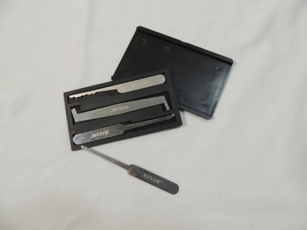 MAXAM 5PC LOCK PICK SET WITH POLYPROPYLENE STORAGE CASE NEW IN BOX. LOCK PICK TOOLS AS SHOWN SEE PHOTO FOR MORE DETAILS.