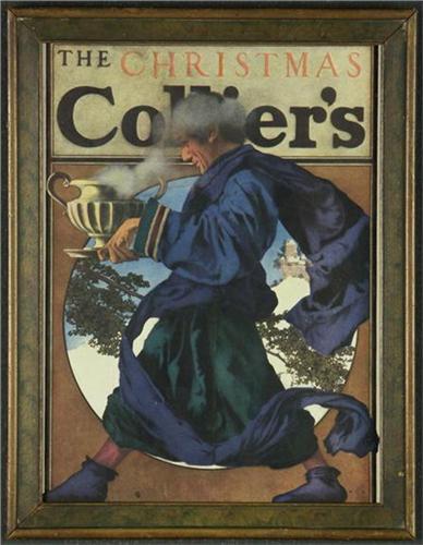COLOR PHOTOLITHOGRAPH 13'' x 9 1/2''. Maxfield Parrish (1870-1966), NH. ''1909 Colliers Christmas Cover''. Note center crease. Placed in a vintage frame, note condition.