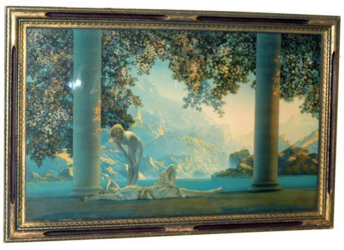 MAXFIELD PARRISH DAYBREAK PRINT, by House of Art, 18"x30", circa 1930, condition: excellent, SHIPPING: See recommended third party shippers. This item can't be packed or shipped by seller.