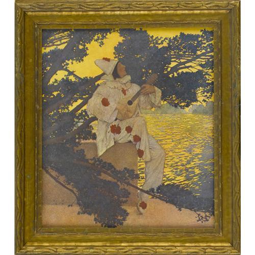 MAXFIELD PARRISH, PIERROT'S SERENADE MAXFIELD PARRISH (American 1870 - 1966)