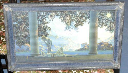 MAXFIELD PARRISH PRINT, Daybreak, 10"x18", original frame with losses, condition: excellent, PACKING AND SHIPPING (excluding insurance) $30,