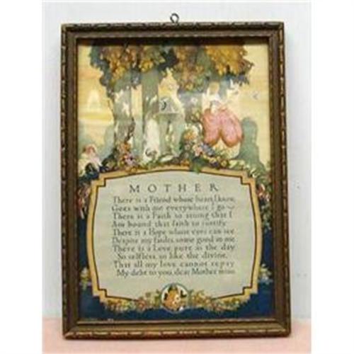 BEAUTIFUL MOTTO PICTURE DEDICATED TO MOTHER,SIGNED BUCKBEE BREHM, FRAMED IN LOVELY ORIGINAL FRAME WITH GLASS, ALL ORIGINAL AND IN  EXCELLENT CONDITION,as per pictures, measures 10 3/4" X 7 3/4" - US BUYER TO PAY 9.00 FOR SHIPPING PLUS INSURANCE.THANKS.