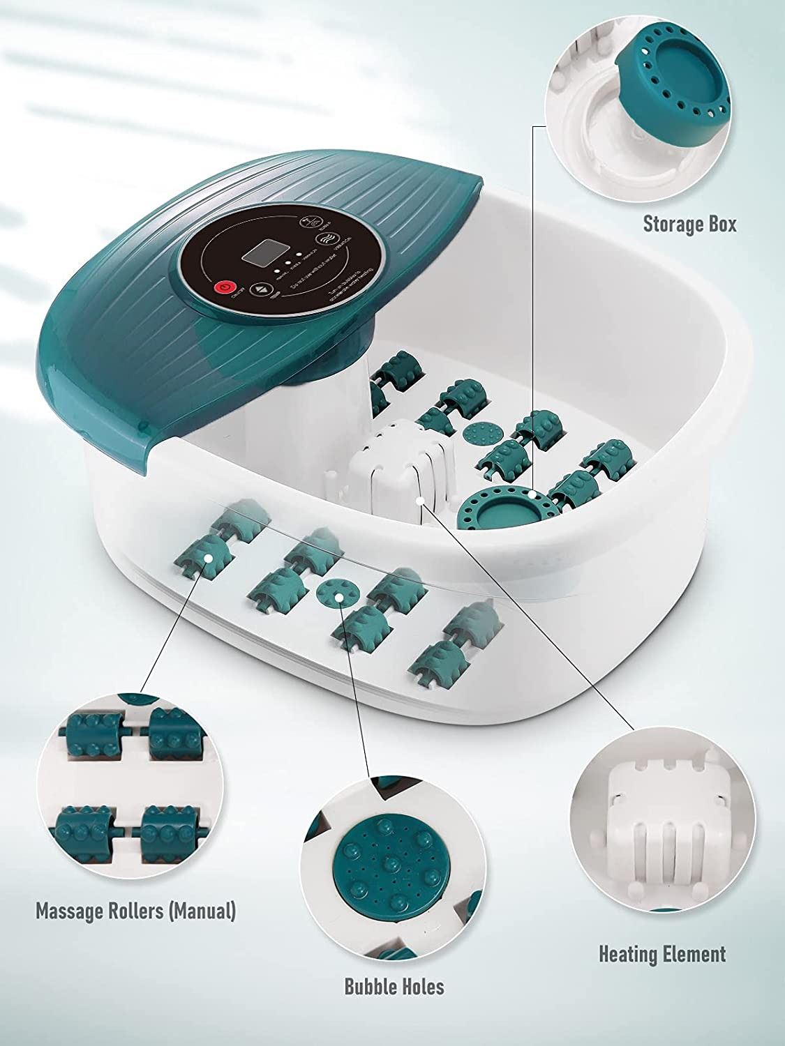 ADJUSTABLE TEMPERATURE FAST HEATING AND PEDICURE FOOT SPA WITH 16 MINI MASSAGE ROLLERS FOR STRESS RELIEF AT HOME