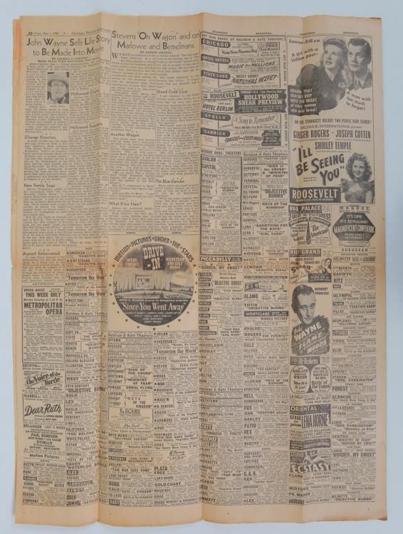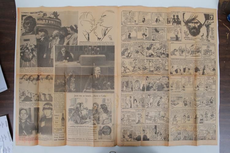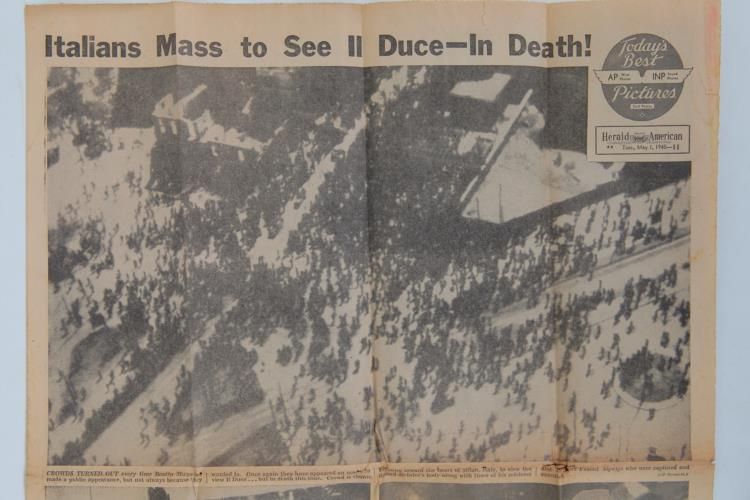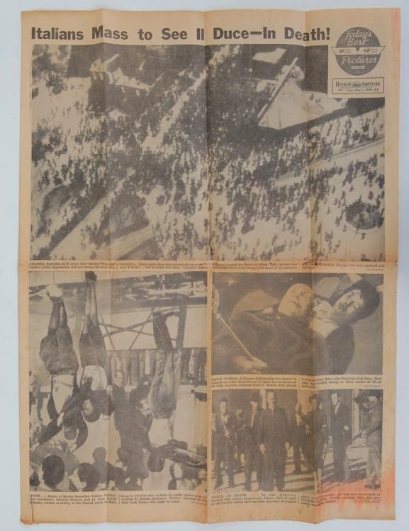 MAY 1, 1945 PAPER WITH MUSSOLINI'S HANGING-W/MISTRESS-FULL PG OF PICSCHICAGO DAILY HERALD, ALONG WITH MUSSOLINI PICS & STORY SEVERAL OTHER INTERESTING ITEMS INCL PHOTO OF ARREST OF HANS GOEBBELS BROTHER OF JOSEPH