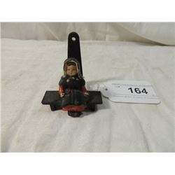 VINTAGE CAST IRON LETTER HOLDER GIRL ON BENCH