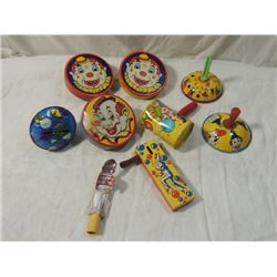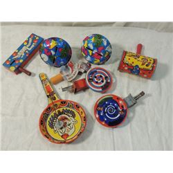 LOT 9 VINTAGE NOISE MAKERS TIN NEW YEARS KIRCHHOF