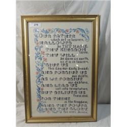 VINTAGE LORDS PRAYER NEEDLEPOINT 1900'S FRAMED
